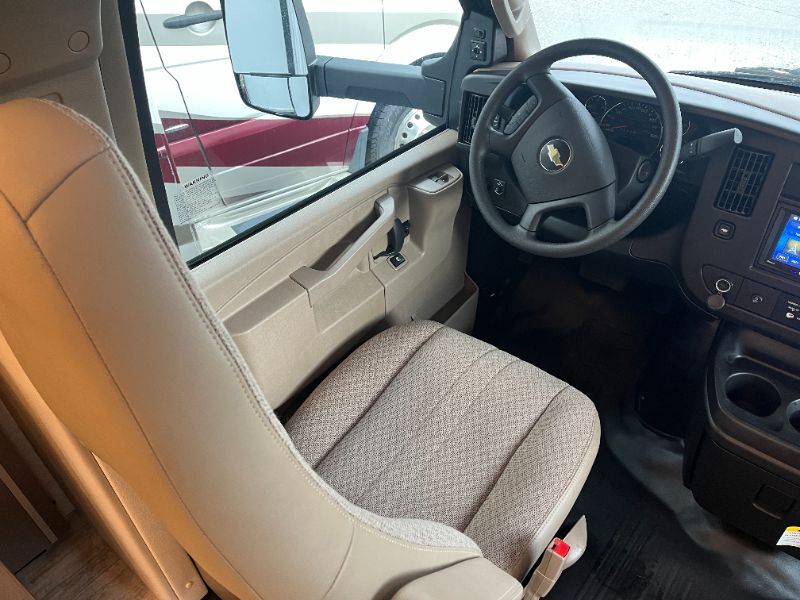 Experience a smooth ride to each destination with the Thor Motor Coach Chateau Class C gas motorhomes! There is a Ford E-Series chassis or optional Chevrolet chassis on select models, and each model includes an 8,000 lb. trailer hitch to bring the family car along. They are constructed with a welded tubular aluminum roof, sidewall cage construction, vacu-bond laminated roof, walls, and floor with block foam insulation to keep the heat and air conditioning inside. The slick fiberglass exterior with graphics package and black framed windows are sure to turn heads down the highway too. Inside, you'll be met with residential vinyl flooring, window privacy shades, a power bath vent, and pressed laminate kitchen countertops. There is even a tankless water heater for endless hot showers, a 4.0 kw gas generator to keep you going, and solar prep for off-grid capabilities!