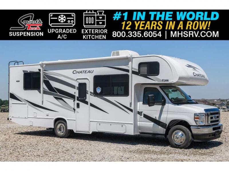 Experience a smooth ride to each destination with the Ford E-Series chassis or optional Chevy chassis on these Thor Motor Coach Chateau Class C gas motorhomes! The 31 ft. models even feature a MORryde SmoothTECH™ ride suspension system and automatic leveling jacks with touch pad controls for easy set up. They are constructed with a welded tubular aluminum roof, sidewall cage construction, vacu-bond laminated roof, walls, and floor with block foam insulation to keep the heat and air conditioning inside. The slick fiberglass exterior with graphics package is sure to turn heads down the highway too. Come find your favorite one today and get on the road!