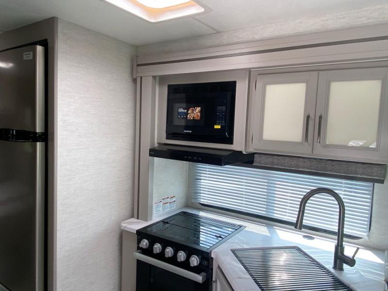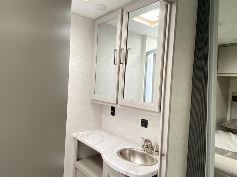 You will have everything you need for a comfortable vacation in this motorhome! Starting with the rear private bedroom which has a 60" x 74" queen bed with closets on either side of it and TV prep. As you step down from the bedroom, you will notice the full bathroom to your right which has a 24" x 36" shower with a skylight above it for added natural lighting. The fully equipped kitchen has everything you need to prepare your best home cooked meals, and you can enjoy them at the 71" Dream Dinette then relax on the 68" jackknife sofa across from the 40" TV. You could even add an optional exterior 32" TV for more entertainment!