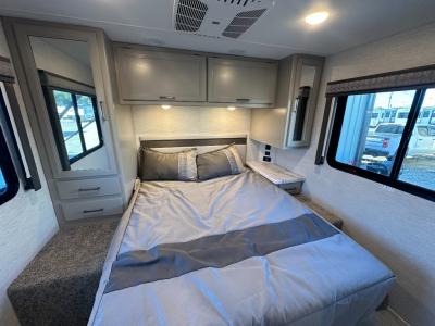 Experience a smooth ride to each destination with the Thor Motor Coach Chateau Class C gas motorhomes! There is a Ford E-Series chassis or optional Chevrolet chassis on select models, and each model includes an 8,000 lb. trailer hitch to bring the family car along. They are constructed with a welded tubular aluminum roof, sidewall cage construction, vacu-bond laminated roof, walls, and floor with block foam insulation to keep the heat and air conditioning inside. The slick fiberglass exterior with graphics package and black framed windows are sure to turn heads down the highway too. Inside, you'll be met with residential vinyl flooring, window privacy shades, a power bath vent, and pressed laminate kitchen countertops. There is even a tankless water heater for endless hot showers, a 4.0 kw gas generator to keep you going, and solar prep for off-grid capabilities!