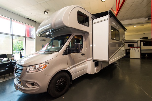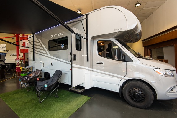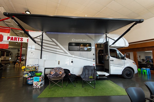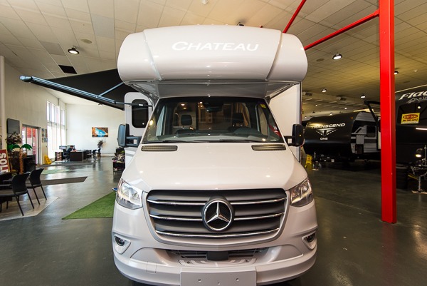 Each Chateau Sprinter offers you a spacious and well-appointed travel companion featuring comfort and amenities that feel like home. You will enjoy the smooth ride of the Mercedes Benz Sprinter chassis that is powered by a 2.0L I-4 engine. All of your journeys will provide you an effortless and relaxing time on the road just determine your route and click on the cruise control. The lighted rotocast storage compartment provides plenty of space to store all of your camping accessories so you can easily grab what you need when camping, then easily tuck it away when you travel. A powered patio awning allows you additional living space outdoors, and the LP external connection allows you to cook easily on the grill. And, no rainy day will upset your vacation because you can enjoy movies inside on a 32-inch Smart TV. The Chateau is your true home-on-wheels with beautiful interiors including comfortable sleeping spaces and kitchen amenities for delicious home-cooked meals anytime! Come choose your model today.