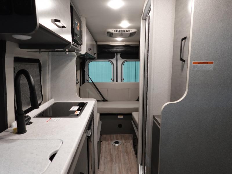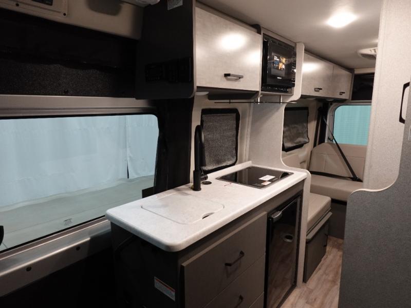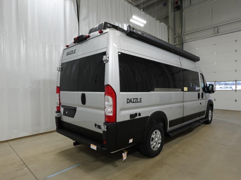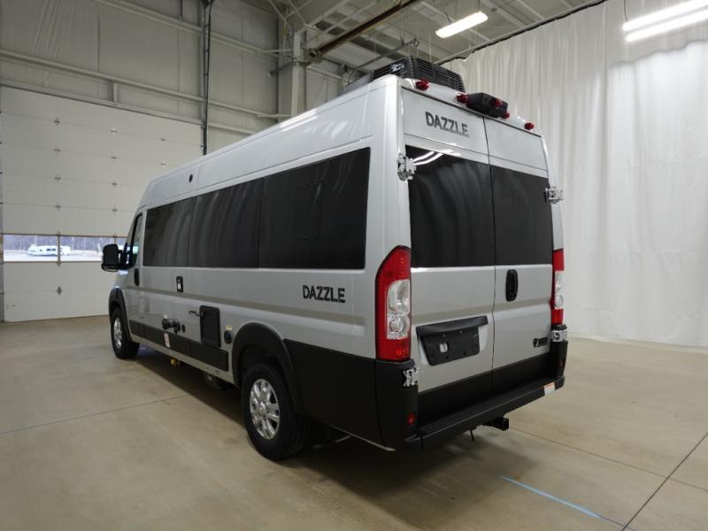 Plenty of amenities are packed into the Thor Motor Coach Dazzle Class B motorhome. Built on the RAM ProMaster® 3500XT gas window van chassis, these come with a 3,500 lb. trailer hitch, an Onan® RV QG 2800 gas generator, and a Truma® Combi Eco LP furnace and water heating system. You'll have a convenient Rapid Camp+® Multiplex wiring control system, which allows you to operate features like lights, generator, slides, awning, HVAC, and more with an easy to use small handheld remote. Inside, you'll enjoy residential vinyl flooring, a soft-touch vinyl ceiling, and pressed countertops with an undermount sink and sink covers to name a few comforts.