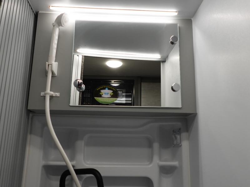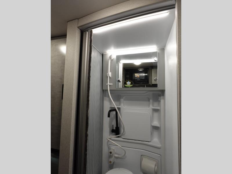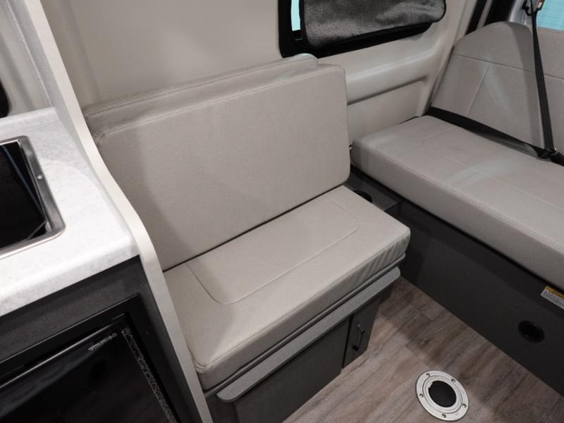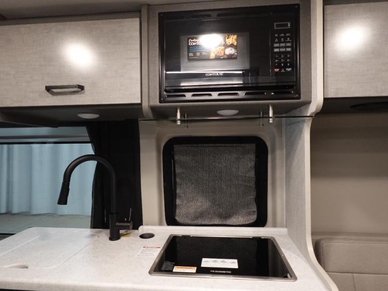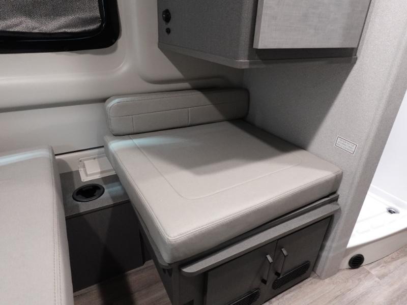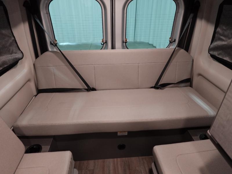 Flexibility is the name of the game in this Thor Motor Coach Dazzle! The rear sofa converts to a 74" x 71" sleeping area, but during the day the removable table and storage area make for a comfortable living space. If you'd rather eat up front, you can sit on the sofa and use the removable table there, which is on a swing arm for convenience. The swivel driver and passenger captain's chairs can also serve as extra seating when you're not in motion. The kitchen offers a single door 12V refrigerator and two burner cooktop. You'll also appreciate the fully enclosed wet bath which comes with a cassette toilet and shower.