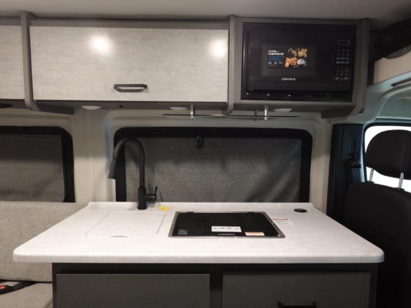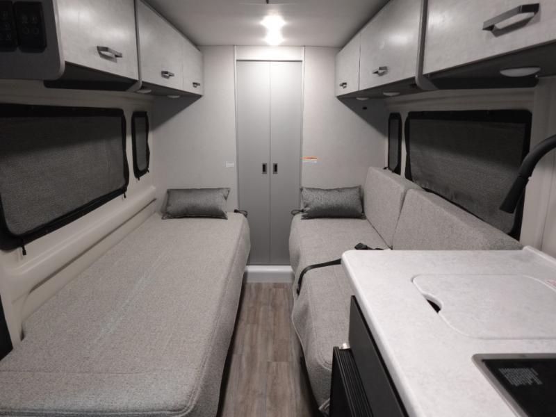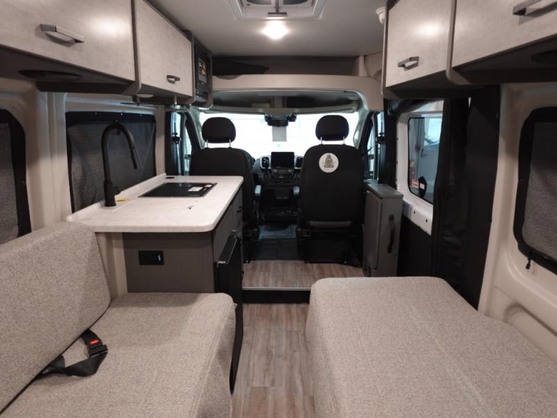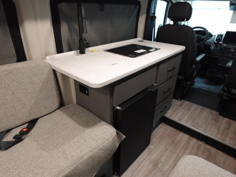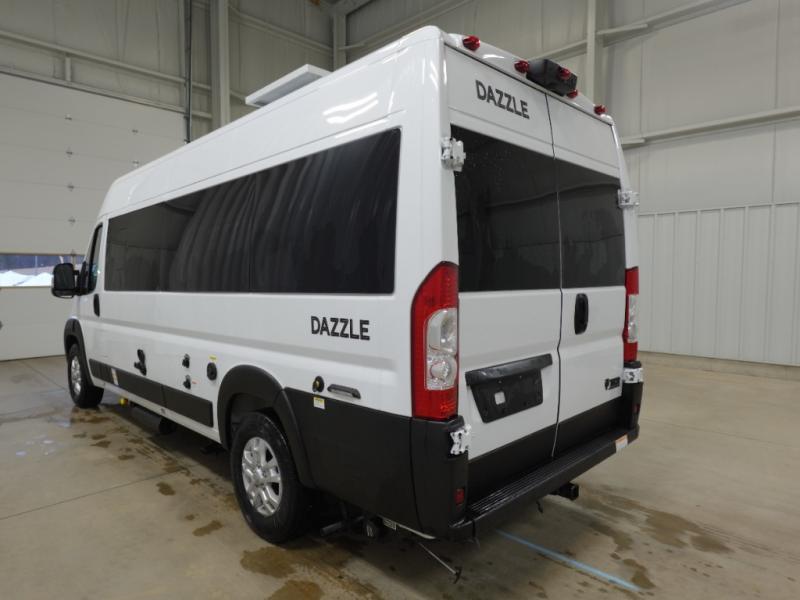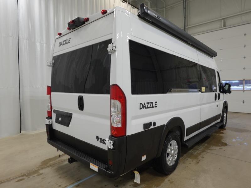 Plenty of amenities are packed into the Thor Motor Coach Dazzle Class B motorhome. Built on the RAM ProMaster® 3500XT gas window van chassis, these come with a 3,500 lb. trailer hitch, an Onan® RV QG 2800 gas generator, and a Truma® Combi Eco LP furnace and water heating system. You'll have a convenient Rapid Camp+® Multiplex wiring control system, which allows you to operate features like lights, generator, slides, awnings, HVAC, and more from an easy to use small handheld remote. Inside, you'll enjoy residential vinyl flooring, a soft-touch vinyl ceiling, and pressed countertops with an undermount sink and sink covers to name a few comforts.