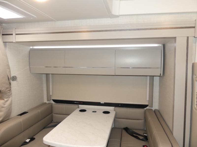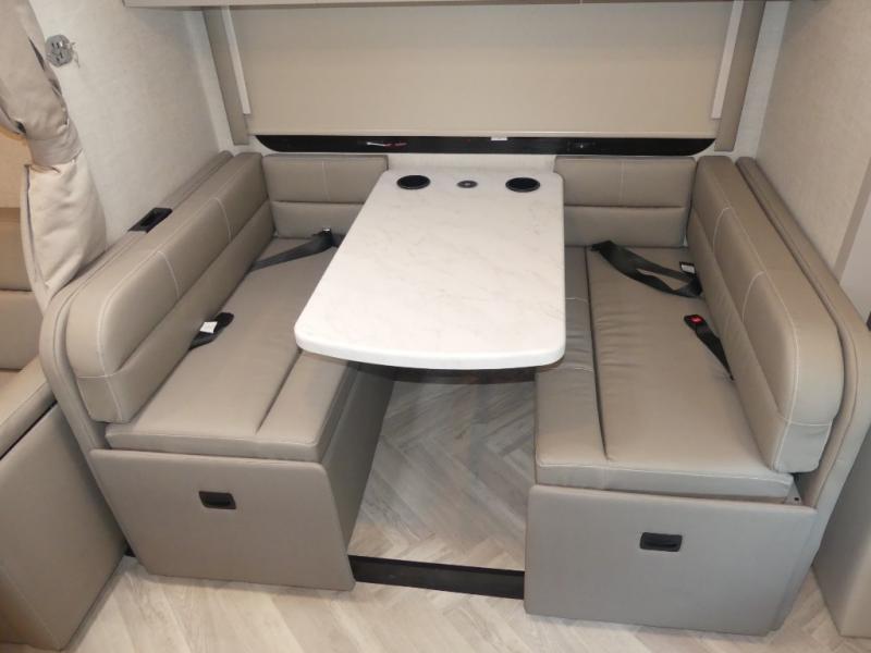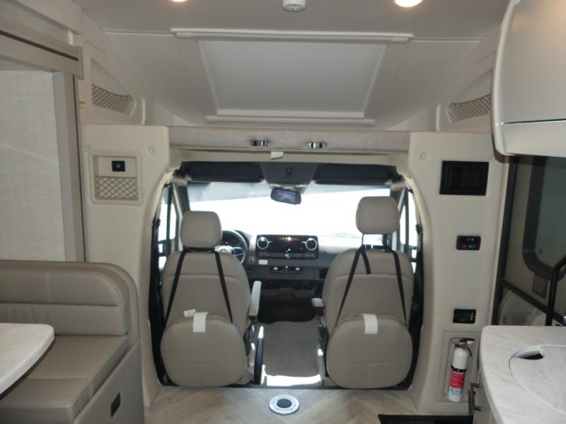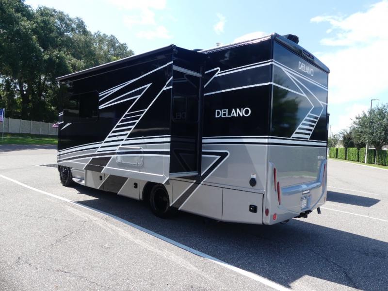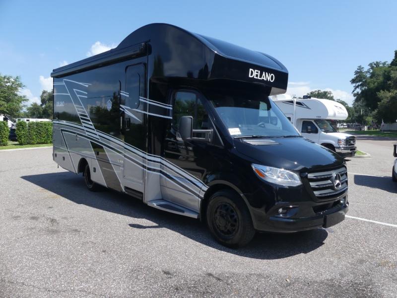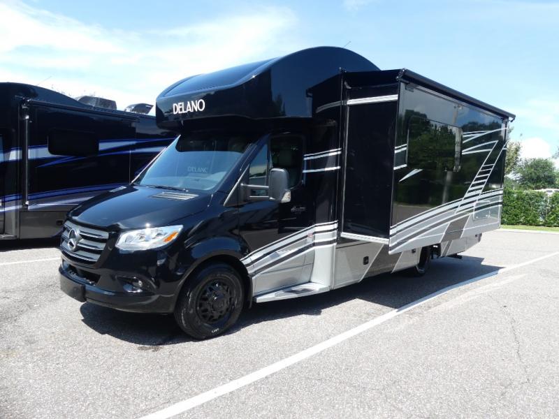 Luxury comes standard in the Delano Sprinter Class C diesel motorhomes by Thor Motor Coach. You will find it so easy to maneuver the road with the Mercedes-Benz Safety package that includes features such as active braking assist and distance regulator distronic plus that will help keep a safe distance from vehicles in front of you. The frameless windows and the full-body paint package with gel coated sidewalls is sure to be eye-catching, plus there is invisible front paint protection for added defense against the elements. Each model includes the Rapid Camp+ multiplex wiring control system that will make set-up easier than ever, a Winegard ConnecT 2.0 WiFi/4G/TV antenna to keep you connected to the outside world, and premium one-piece Crossflex roofing material that is ultra durable. The Delano Sprinter also includes many interior comforts, like the easy-to-clean residential vinyl flooring, the Euro-style cabinetry, and the Leatherette furniture!