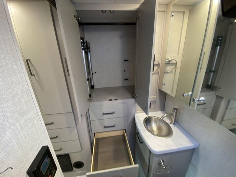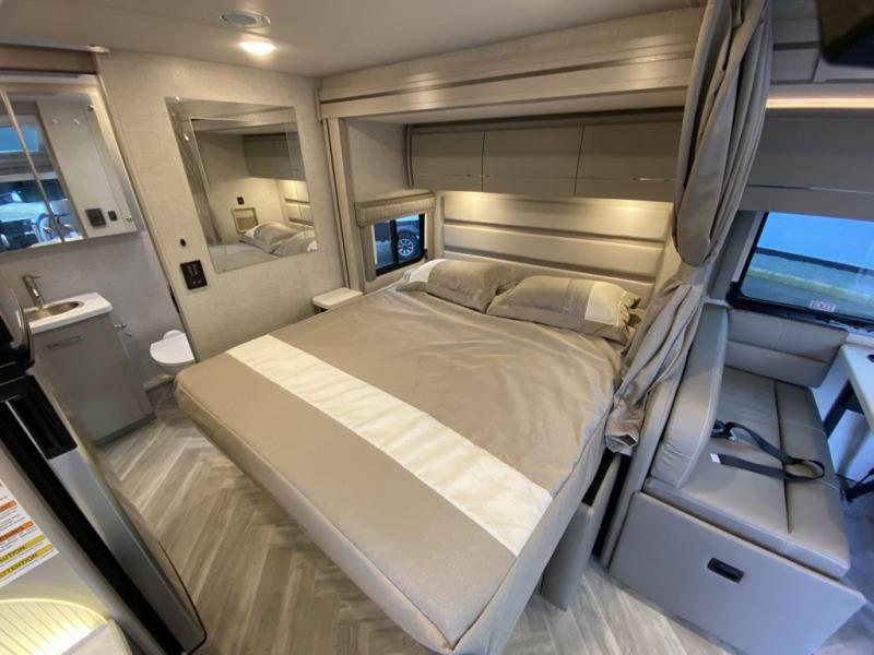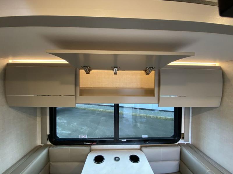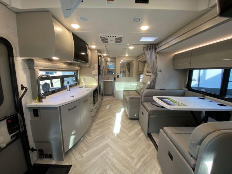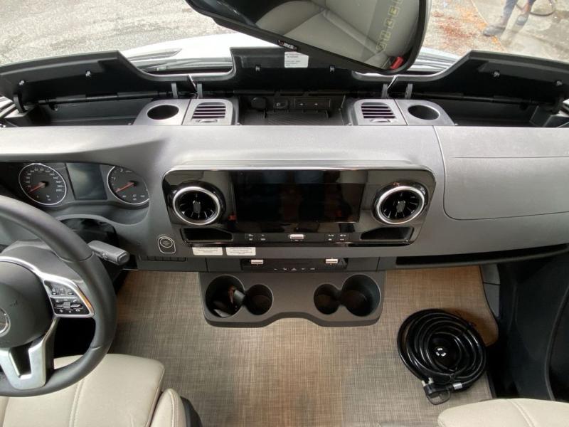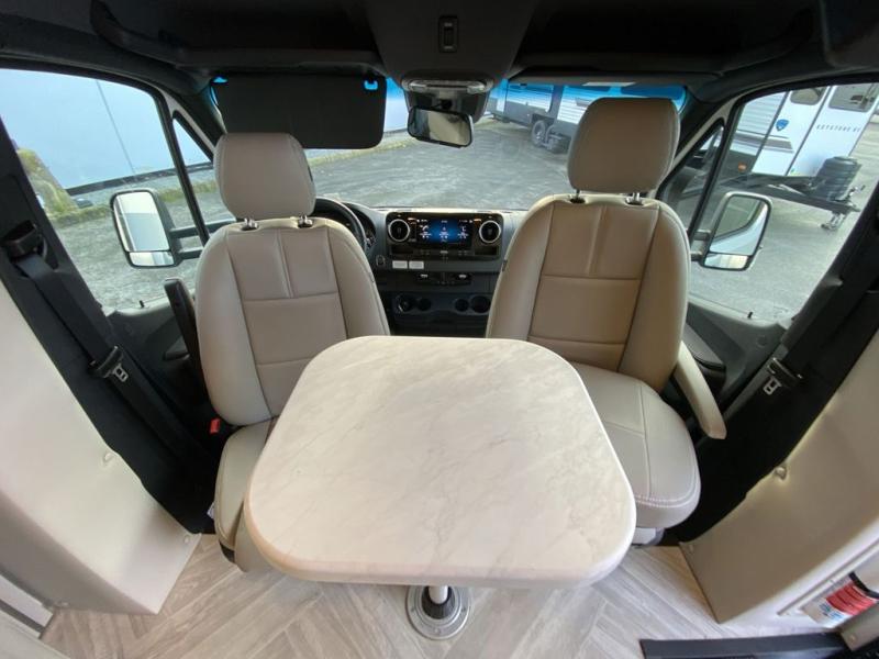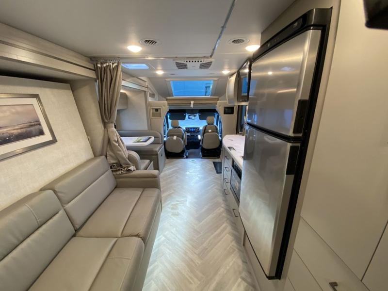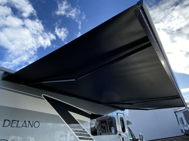 Luxury comes standard in the Delano Sprinter Class C diesel motorhomes by Thor Motor Coach. You will find it so easy to maneuver the road with the Mercedes-Benz Safety package that includes features such as active braking assist and distance regulator distronic plus that will help keep a safe distance from vehicles in front of you, and you can add the optional blind spot detection system for even more convenience. The frameless windows and the full-body paint package with gel coated sidewalls is sure to be eye-catching, plus there is invisible front paint protection for added defense against the elements. Each model includes the Rapid Camp+ multiplex wiring control system that will make set-up easier than ever, a Winegard ConnecT 2.0 WiFi/4G/TV antenna to keep you connected to the outside world, and premium one-piece Crossflex roofing material that is ultra durable. The Delano Sprinter also includes many interior comforts, like the easy-to-clean residential vinyl flooring, the Euro-style cabinetry, and the Leatherette furniture!