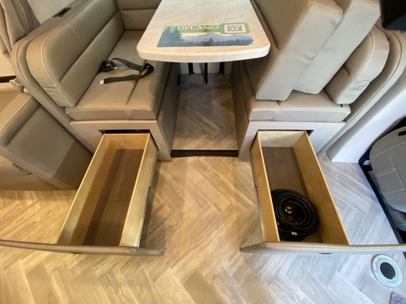 You can go just about anywhere your heart desires in this spacious coach for five. The cab-over bunk will be a big plus with the little ones, and you'll enjoy the Murphy bed when the 67" sofa isn't being used. Whip up a meal on the two burner gas cooktop, or use the convection microwave with an air fryer, and the 70" Dream Dinette will provide a space to dine at. This model includes a full rear bath with a shower skylight, a power bath vent to keep everything fresh, and a linen/closet for clean towels. Start exploring today in this Delano Sprinter coach!