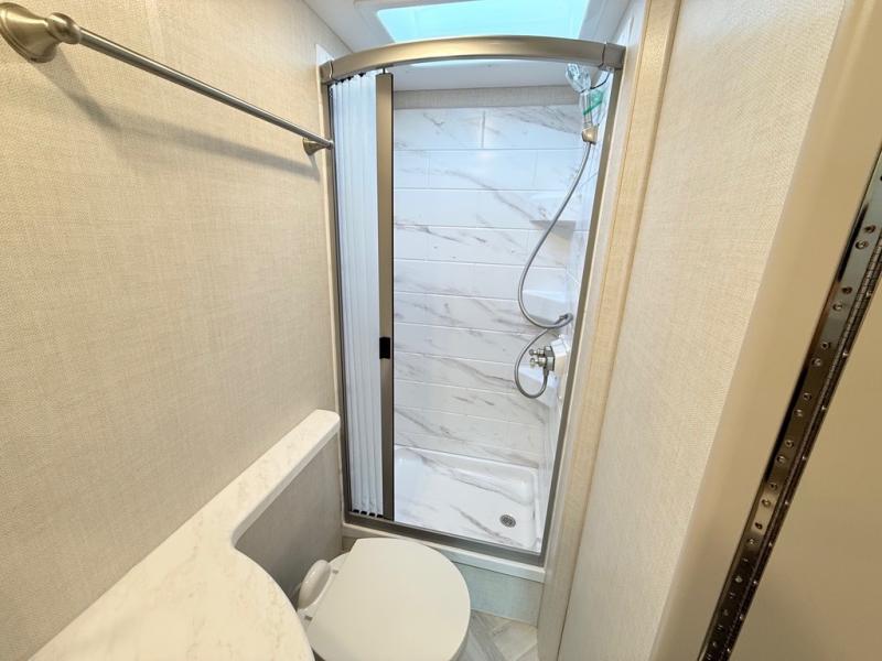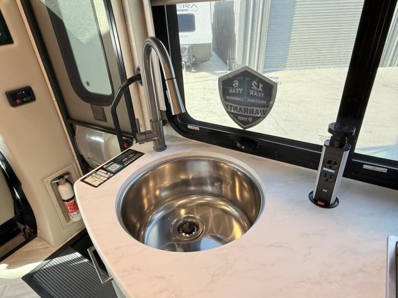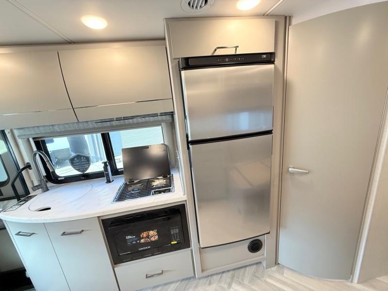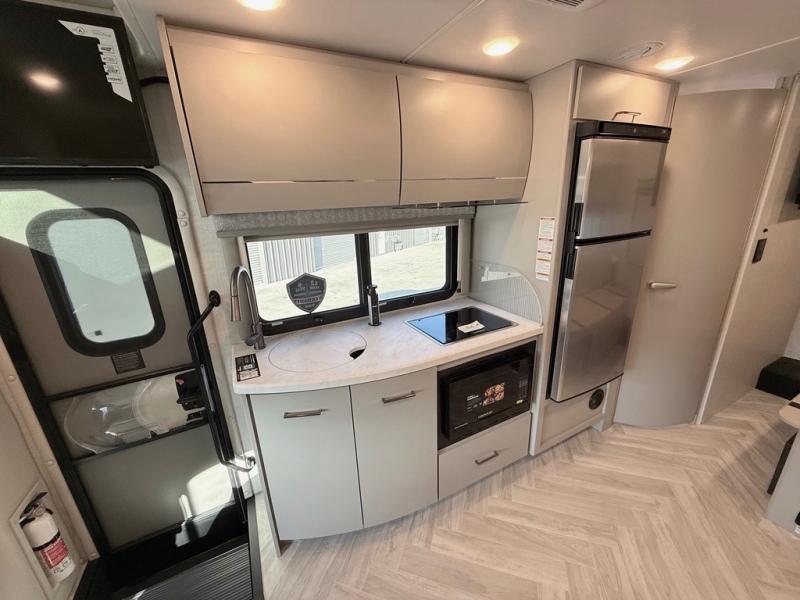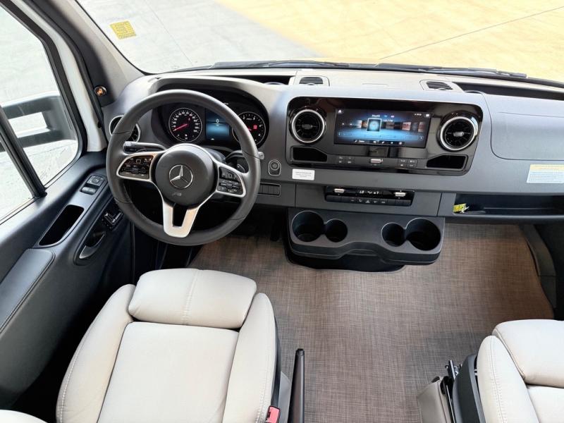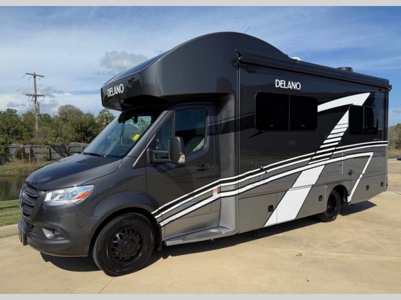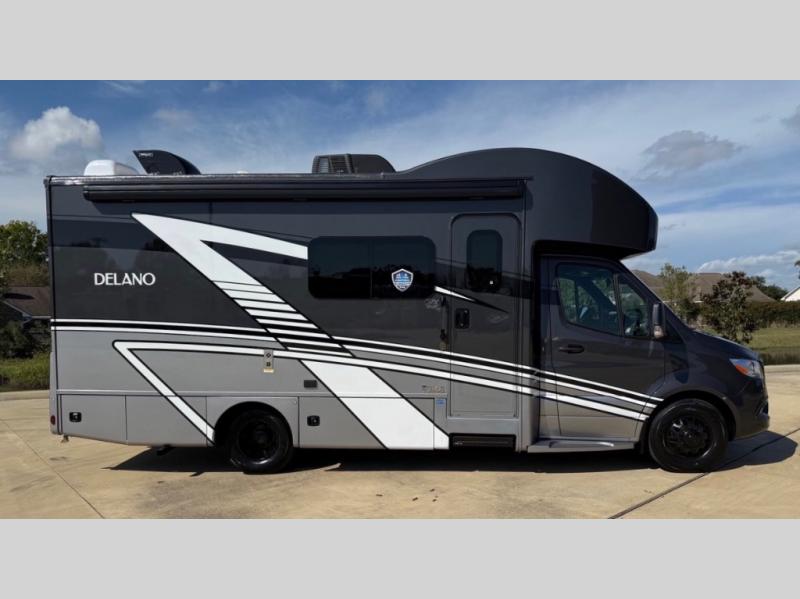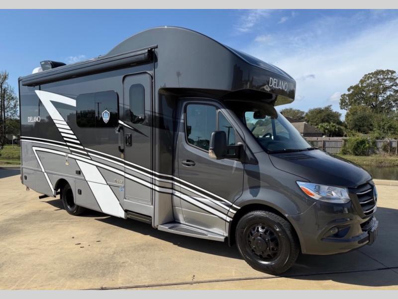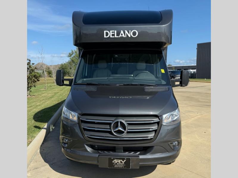 Luxury comes standard in the Delano Sprinter Class C diesel motorhomes by Thor Motor Coach. You will find it so easy to maneuver the road with the Mercedes-Benz Safety package that includes features such as active braking assist and distance regulator distronic plus that will help keep a safe distance from vehicles in front of you, and you can add the optional blind spot detection system for even more convenience. The frameless windows and the full-body paint package with gel coated sidewalls is sure to be eye-catching, plus there is invisible front paint protection for added defense against the elements. Each model includes the Rapid Camp+ multiplex wiring control system that will make set-up easier than ever, a Winegard ConnecT 2.0 WiFi/4G/TV antenna to keep you connected to the outside world, and premium one-piece Crossflex roofing material that is ultra durable. The Delano Sprinter also includes many interior comforts, like the easy-to-clean residential vinyl flooring, the Euro-style cabinetry, and the Leatherette furniture!