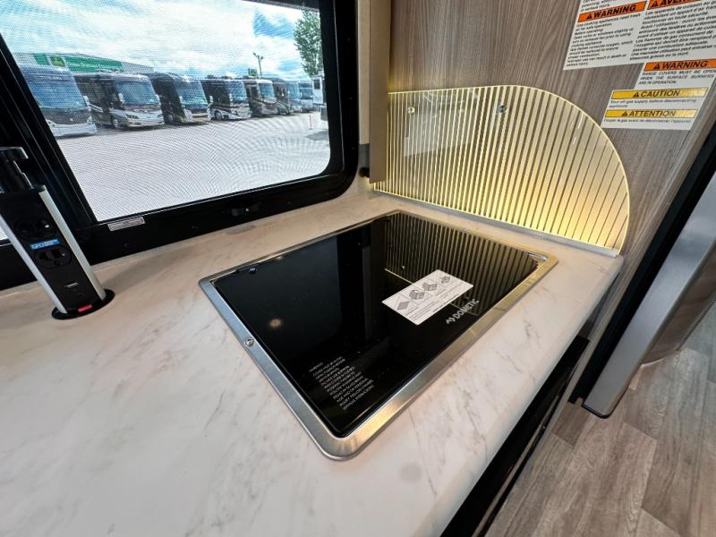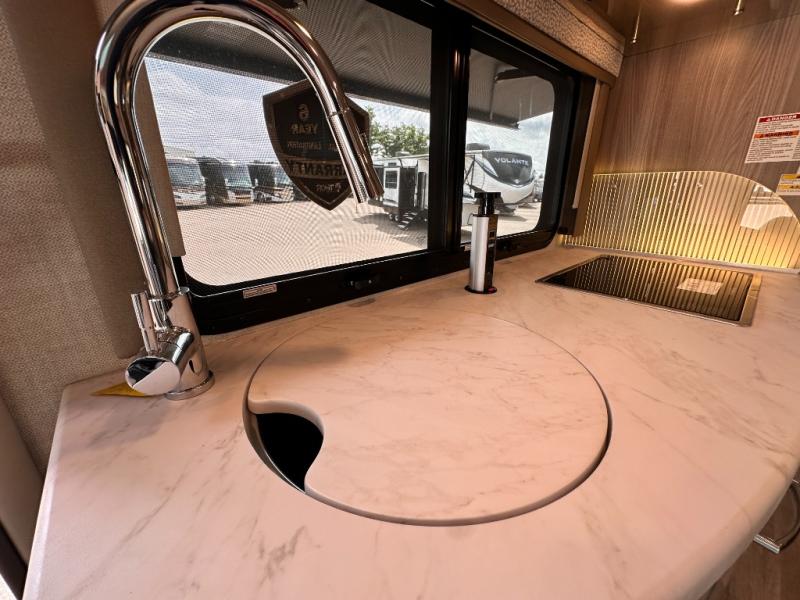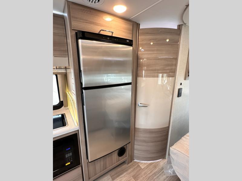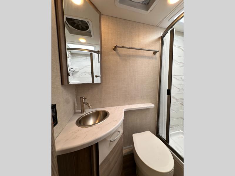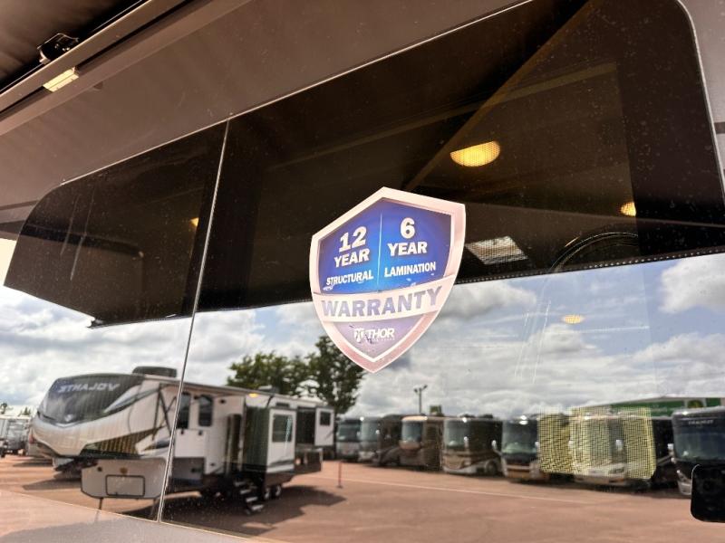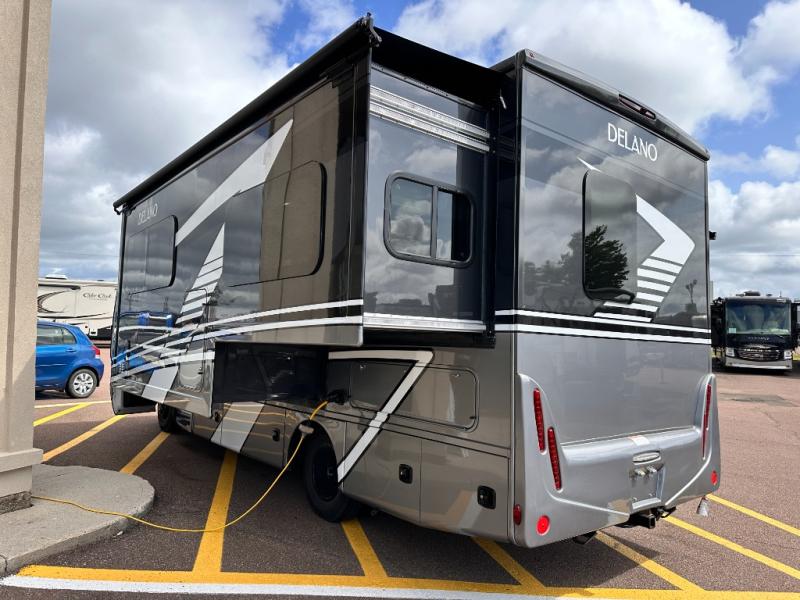 Luxury comes standard in the Delano Sprinter Class C diesel motorhomes by Thor Motor Coach. You will find it so easy to maneuver the road with the Mercedes-Benz Safety package that includes features such as active braking assist and distance regulator distronic plus that will help keep a safe distance from vehicles in front of you, and you can add the optional blind spot detection system for even more convenience. The frameless windows and the full-body paint package with gel coated sidewalls is sure to be eye-catching, plus there is invisible front paint protection for added defense against the elements. Each model includes the Rapid Camp+ multiplex wiring control system that will make set-up easier than ever, a Winegard ConnecT 2.0 WiFi/4G/TV antenna to keep you connected to the outside world, and premium one-piece Crossflex roofing material that is ultra durable. The Delano Sprinter also includes many interior comforts, like the easy-to-clean residential vinyl flooring, the Euro-style cabinetry, and the Leatherette furniture!