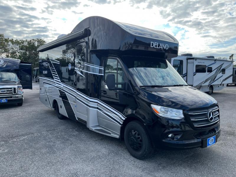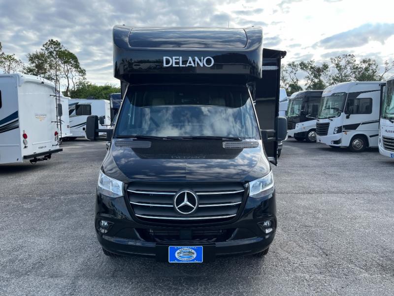 Luxury comes standard in the Delano Sprinter Class C diesel motorhomes by Thor Motor Coach. You will find it so easy to maneuver the road with the Mercedes-Benz Safety package that includes features such as active braking assist and distance regulator distronic plus that will help keep a safe distance from vehicles in front of you, and you can add the optional blind spot detection system for even more convenience. The frameless windows and the full-body paint package with gel coated sidewalls is sure to be eye-catching, plus there is invisible front paint protection for added defense against the elements. Each model includes the Rapid Camp+ multiplex wiring control system that will make set-up easier than ever, a Winegard ConnecT 2.0 WiFi/4G/TV antenna to keep you connected to the outside world, and premium one-piece Crossflex roofing material that is ultra durable. The Delano Sprinter also includes many interior comforts, like the easy-to-clean residential vinyl flooring, the Euro-style cabinetry, and the Leatherette furniture!