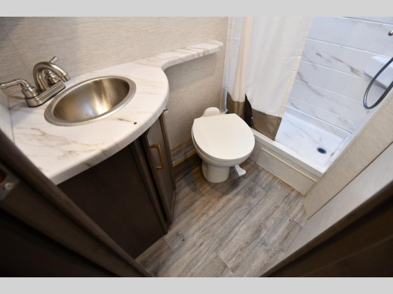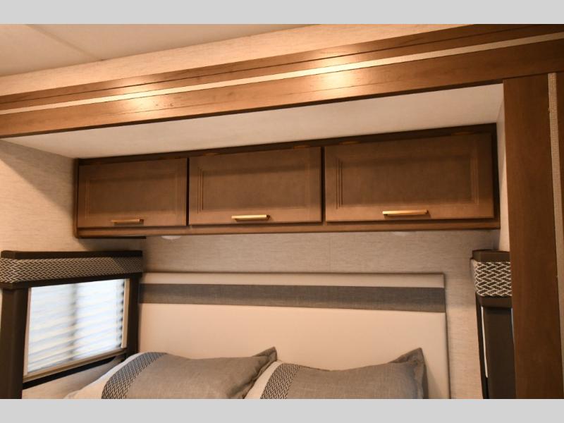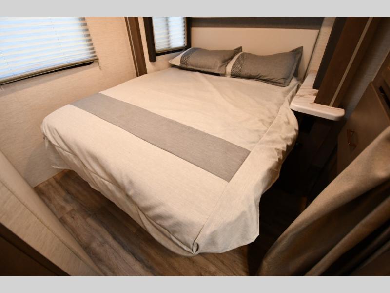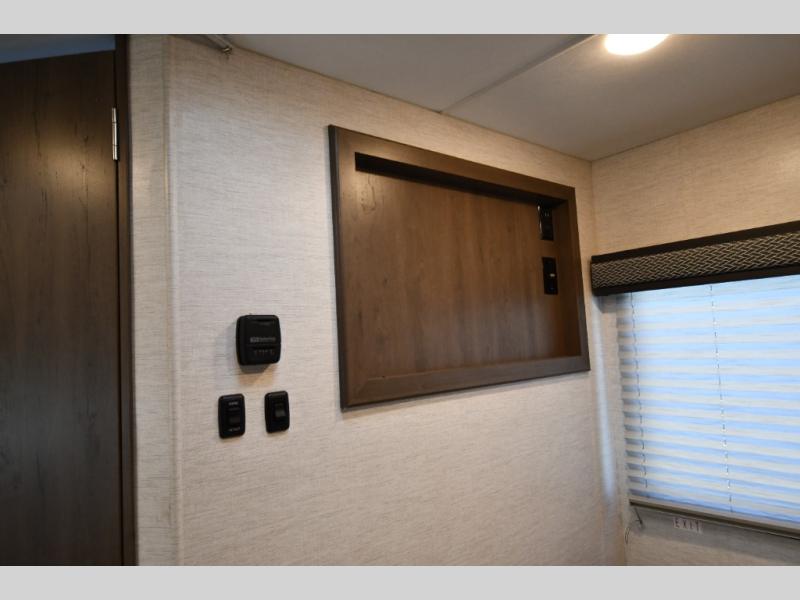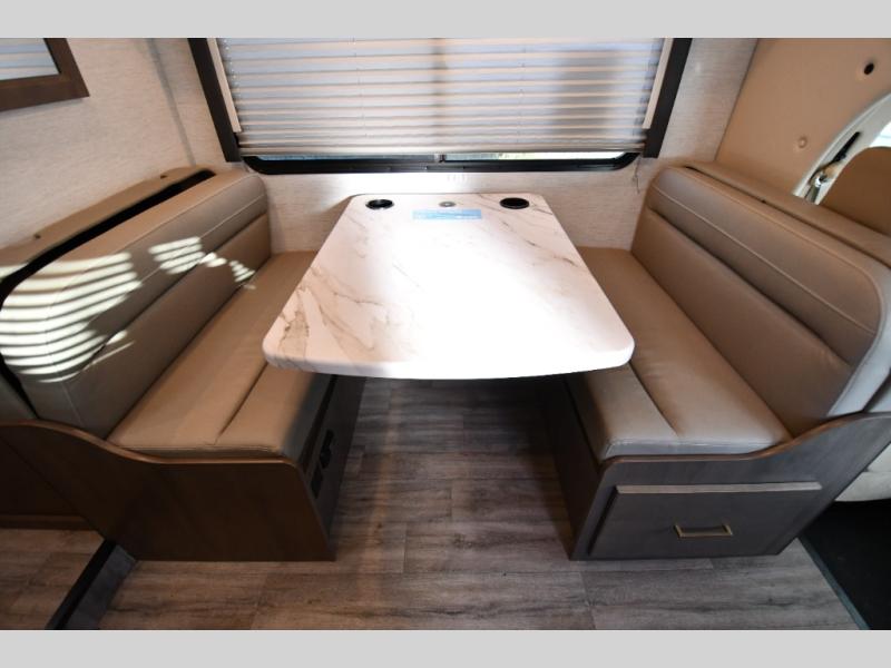 Easily head out for fun at a state park, the lake or your friend's ranch. This coach is easy to maneuver on the road or in town thanks to its compact size, yet has so many conveniences, you might not return home. The front cab over bunk is a perfect sleeping space for guests, the 39" Smart TV allows you to watch shows when you want some inside time, and the dream dinette gives you a place to dine and relax. The cook will love all the kitchen amenities at their fingertips, plus the flip-up countertop extension is super handy. The rear corner bedroom offers a queen bed slide for more floor space, a privacy curtain and a closet, plus the full bathroom is a few steps away.
