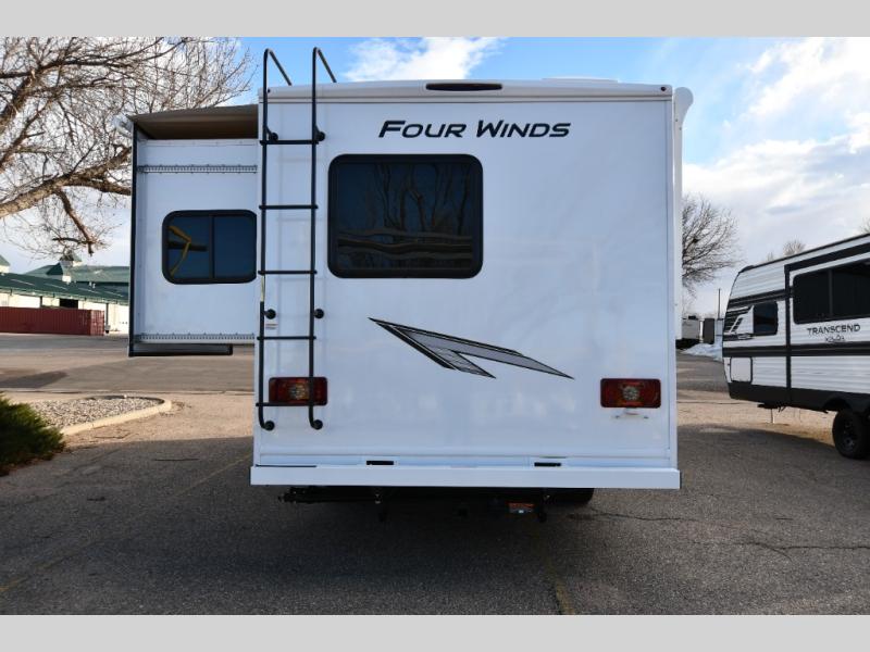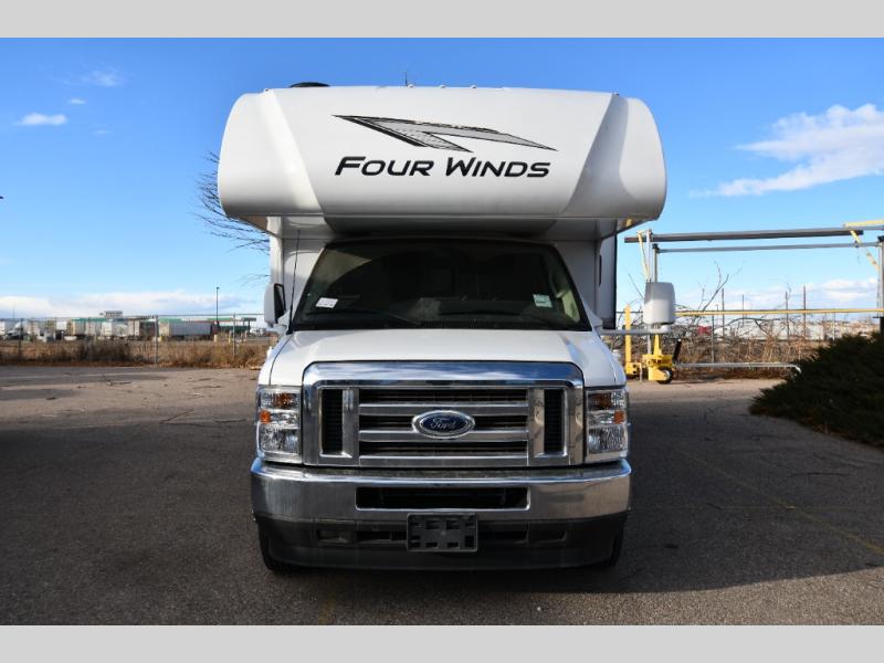 With any Four Winds Class C gas motorhome, you can travel in a trustworthy Ford E-Series chassis with 325HP, or a Chevrolet chassis with 401HP if you choose that option which is available on several models. Each is built with welded sidewall cage construction and a welded tubular aluminum roof, a one-piece fiberglass cap, and includes a slick fiberglass exterior with graphics package for style and years of enjoyment on the open road. Inside, you will enjoy the well-equipped kitchen, the spacious bathroom, the sleeping accommodations and the Winegard ConnecT 2.0 WiFi/4G/TV antenna that allows you to stay connected. With several floorplans to choose from and options to add, you will surely find one that fits your family's needs or your friend's approval. Choose today!