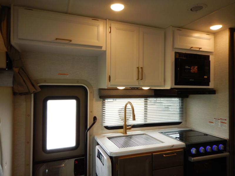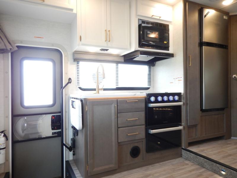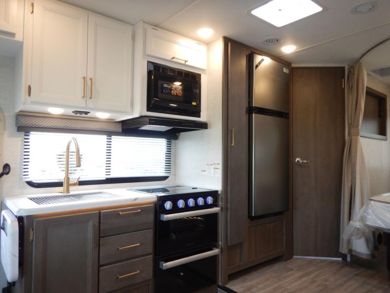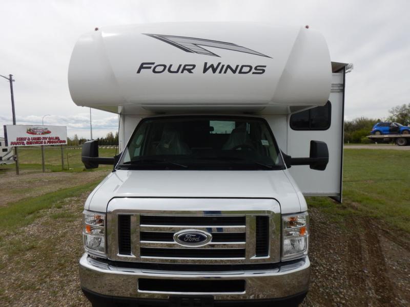 With any Four Winds Class C gas motorhome, you can travel in a trustworthy Ford E-Series chassis with 325HP, or a Chevrolet chassis with 401HP if you choose that option which is available on several models. Each is built with welded sidewall cage construction and a welded tubular aluminum roof, a one-piece fiberglass cap, and includes a slick fiberglass exterior with graphics package for style and years of enjoyment on the open road. Inside, you will enjoy the well-equipped kitchen, the spacious bathroom, the sleeping accommodations and the Winegard ConnecT 2.0 WiFi/4G/TV antenna that allows you to stay connected. With several floorplans to choose from and options to add, you will surely find one that fits your family's needs or your friend's approval. Choose today!