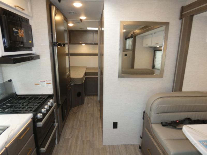 With any Four Winds Class C gas motorhome, you can travel in a trustworthy Chevrolet chassis with 401HP. Each is built with welded sidewall cage construction and a welded tubular aluminum roof, a one-piece fiberglass cap, and includes a slick fiberglass exterior with graphics package for style and years of enjoyment on the open road. Inside, you will enjoy the well-equipped kitchen, the spacious bathroom, the sleeping accommodations and the Winegard ConnecT 2.0 WiFi/4G/TV antenna that allows you to stay connected.
