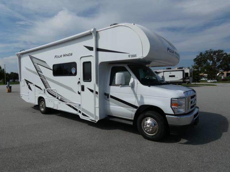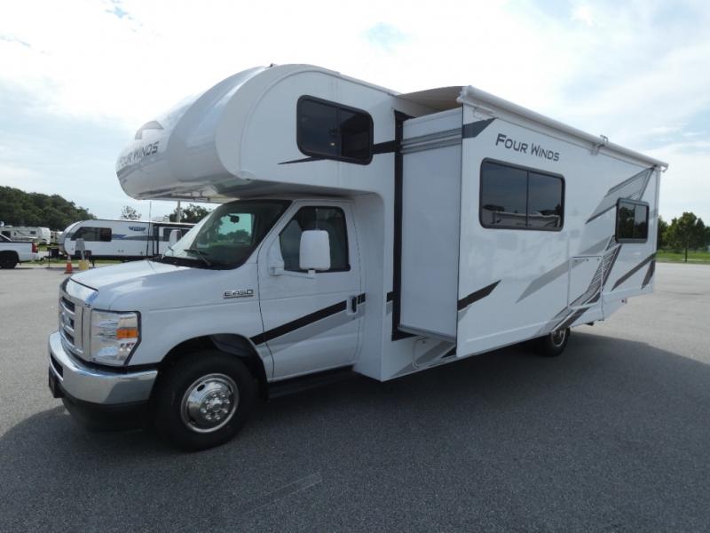 With any Four Winds Class C gas motorhome, you can travel in a trustworthy Ford E-Series chassis with 325HP. Each is built with welded sidewall cage construction and a welded tubular aluminum roof, a one-piece fiberglass cap, and includes a slick fiberglass exterior with graphics package for style and years of enjoyment on the open road. Inside, you will enjoy the well-equipped kitchen, the spacious bathroom, the sleeping accommodations and the Winegard ConnecT 2.0 WiFi/4G/TV antenna that allows you to stay connected. With several floorplans to choose from, you will surely find one that fits your family's needs or your friend's approval. Choose today!