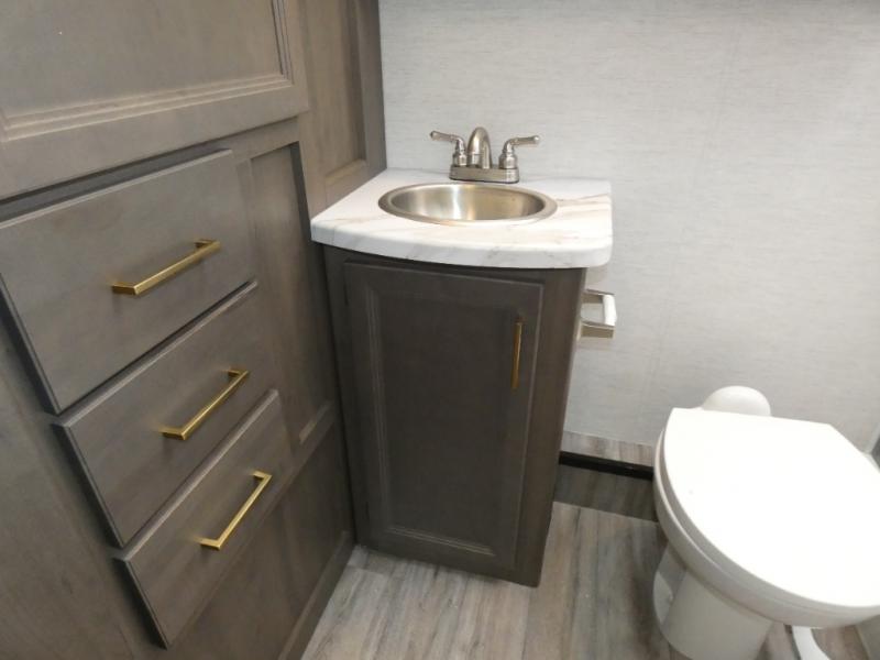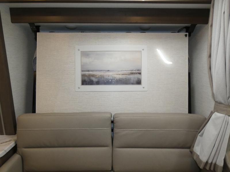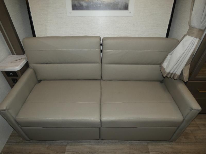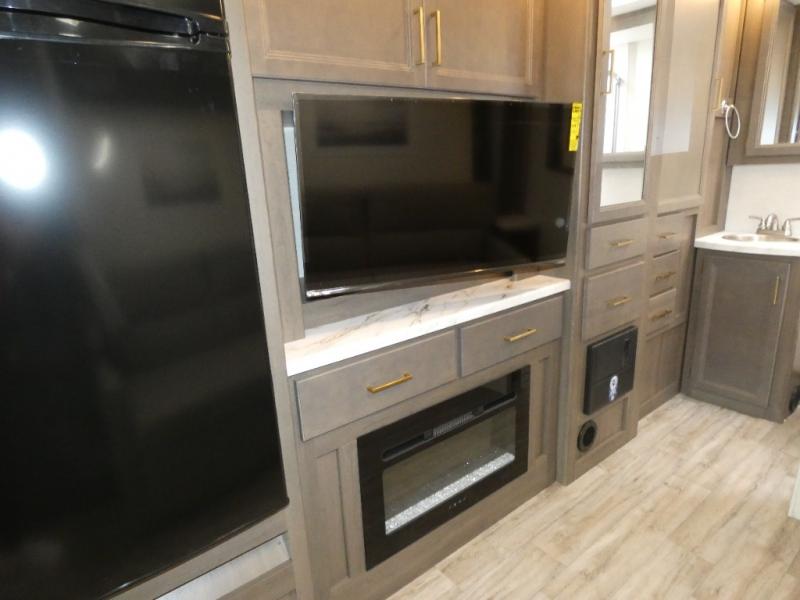 Wherever you decide to roam, you can be sure you'll have comfort at every turn in this spacious coach! There is a dream dinette, two closet, and a sofa with a Murphy bed within the full-wall slide, plus a privacy curtain around the bed if you have guests staying over. A cab-over bunk features a 52" x 96" sleeping area, and everyone can take turns cleaning up in the full rear bath! There is also a fireplace in front of the sofa/Murph bed and a 39" Smart TV for movie nights. In the morning, you can prepare breakfast on the three burner gas cooktop or in the microwave oven, and there is a 12V refrigerator to keep food fresh.