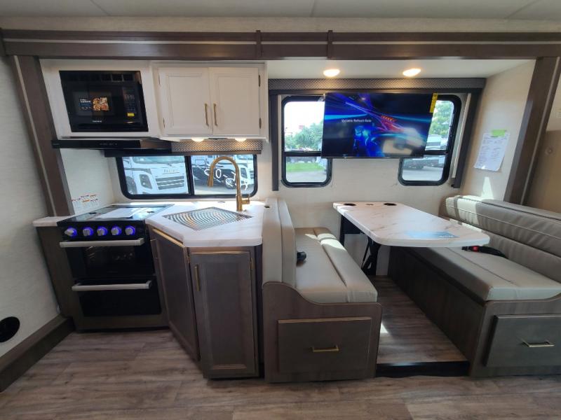 With any Four Winds Class C gas motorhome, you can travel in a trustworthy Ford E-Series chassis with 325HP. Each is built with welded sidewall cage construction and a welded tubular aluminum roof, a one-piece fiberglass cap, and includes a slick fiberglass exterior with graphics package for style and years of enjoyment on the open road. Inside, you will enjoy the well-equipped kitchen, the spacious bathroom, the sleeping accommodations and the Winegard ConnecT 2.0 WiFi/4G/TV antenna that allows you to stay connected. With several floorplans to choose from and options to add, you will surely find one that fits your family's needs or your friend's approval. Choose today!