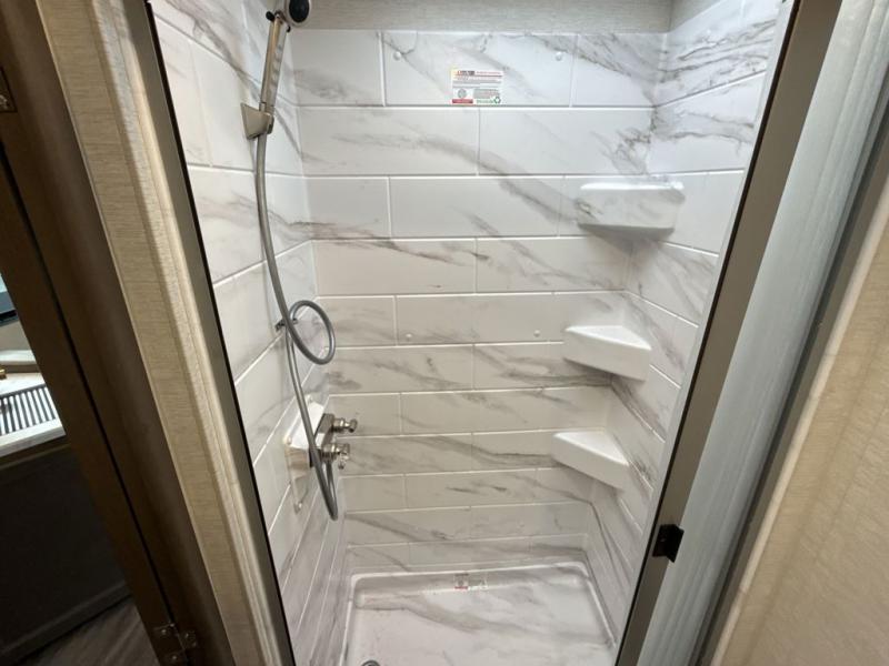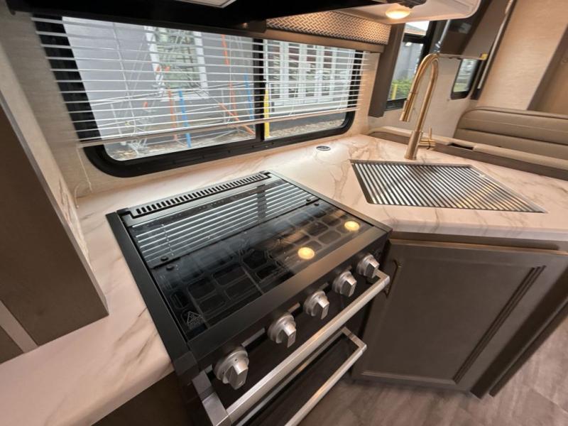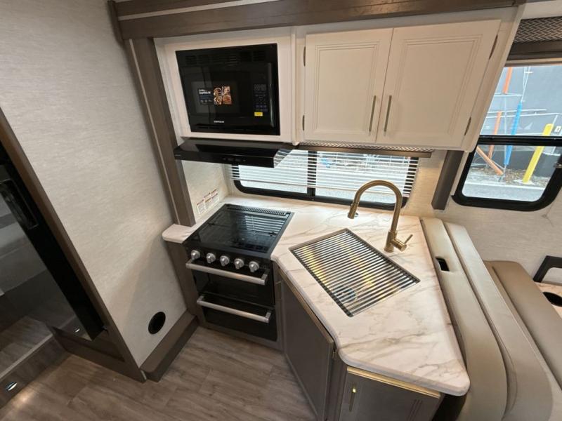 Perfect for a couple or a growing family, this coach will allow you to enjoy inside comforts and outdoor scenery where ever you drive and park! You will have great views out of the many windows when you are indoors, and the power awning offers an outdoor living area protected by the elements when you want some fresh air. The cook will love the large single bowl stainless steel sink with a single handle faucet with a pull-down sprayer when cleaning fruits and veggies, the gas cooktop and microwave when making meals, as well as the 12V refrigerator to hold all the cold items. The slide out creates even more floor space, the furniture offers a place to dine and visit as well as sleep, and the private bedroom with a full bathroom just steps away will complete the deal! You will also appreciate the optional exterior kitchen and optional exterior TV for more choices!