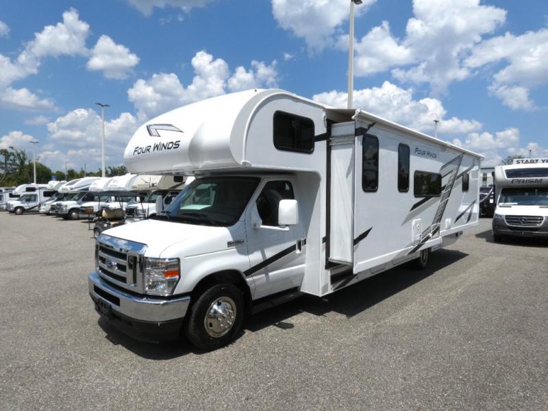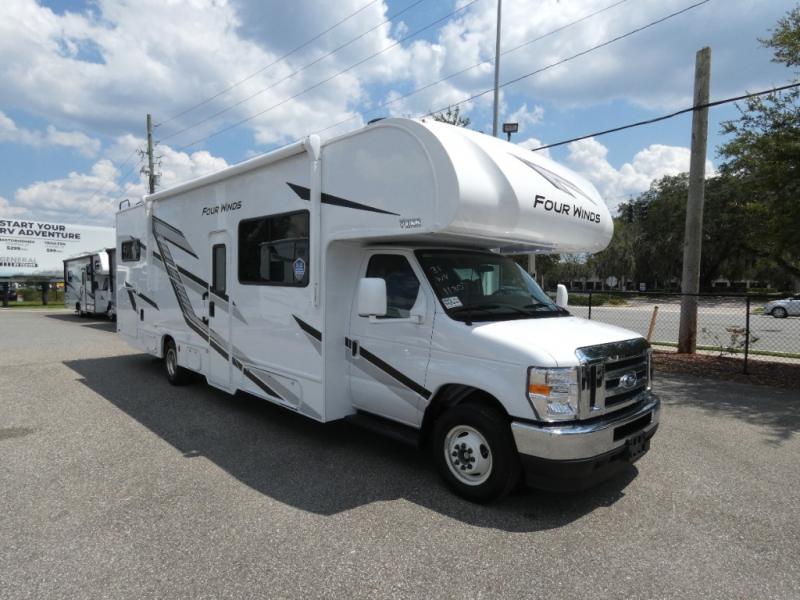 With any Four Winds Class C gas motorhome, you can travel in a trustworthy Ford E-Series chassis with 325HP. Each is built with welded sidewall cage construction and a welded tubular aluminum roof, a one-piece fiberglass cap, and includes a slick fiberglass exterior with graphics package for style and years of enjoyment on the open road. Inside, you will enjoy the well-equipped kitchen, the spacious bathroom, the sleeping accommodations and the Winegard ConnecT 2.0 WiFi/4G/TV antenna that allows you to stay connected. With several floorplans to choose from, you will surely find one that fits your family's needs or your friend's approval. Choose today!