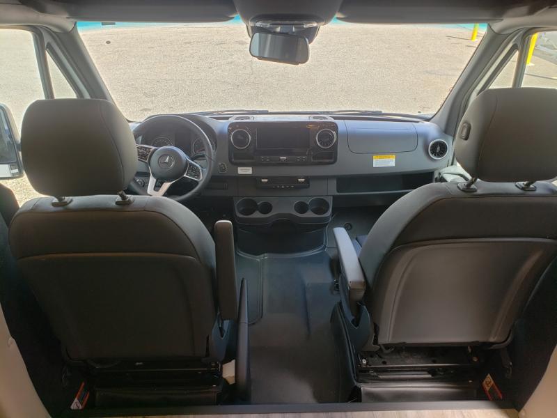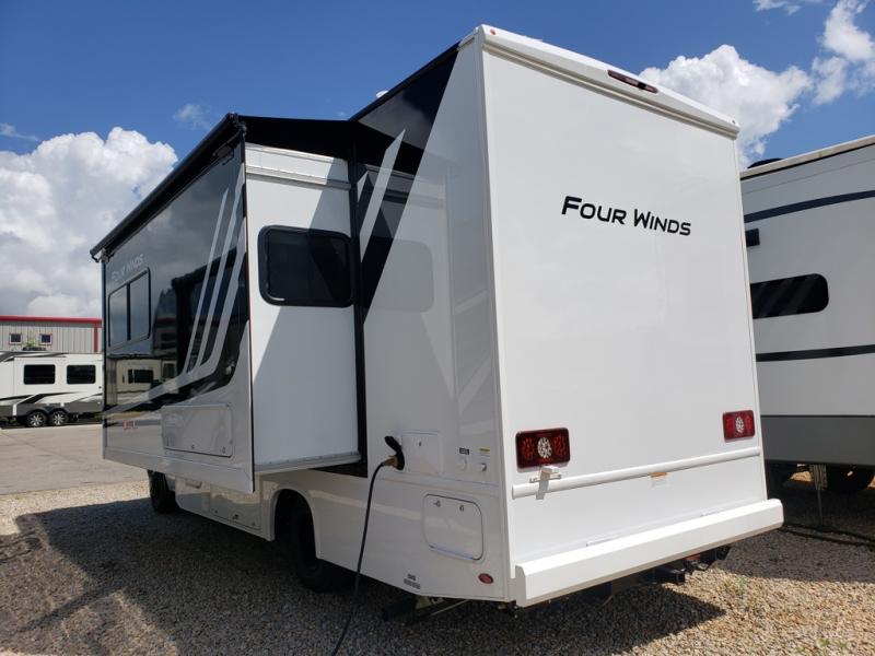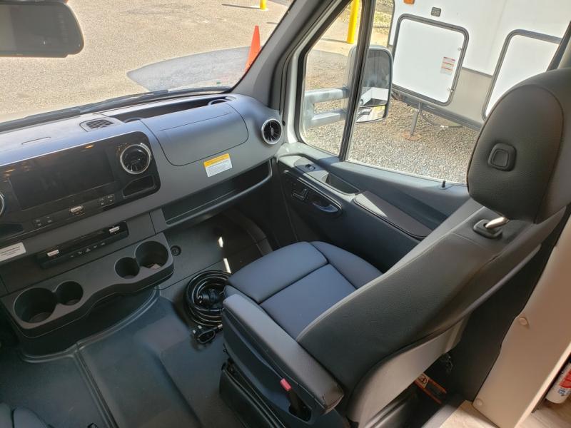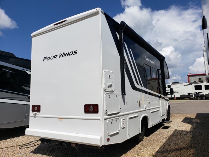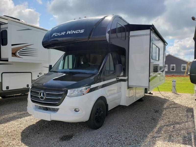 With any Four Winds Sprinter Class C diesel motorhome by Thor Motor Coach, you will have everything you need for unforgettable trips on the road! Each model is constructed with a durable one-piece fiberglass front cap plus a one-piece upper rear cap, a welded tubular aluminum roof and sidewall cage, plus a slick fiberglass exterior with standard graphics package. You can put your own style on your coach by choosing one of the optional partial paint choices, plus there two modern interior decor choices to choose from. The Mercedes-Benz sprinter chassis provides a strong foundation for each model, and the 2.0L l-4 211HP engine will power your adventures both near and far. There is even a 5,000 lb. trailer hitch if you need to tow a jet ski or fishing boat. A 100-watt solar charging system comes standard, along with a 4.0 kw LP generator, a tankless water heater, plus many more utilities to make each trip hassle-free. Step inside to find residential vinyl flooring, decorative glass inserts in the kitchen overhead cabinets, Leatherette furniture, and pressed laminate countertops to name a few comforts!