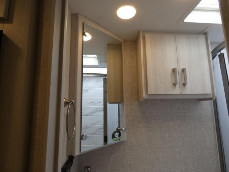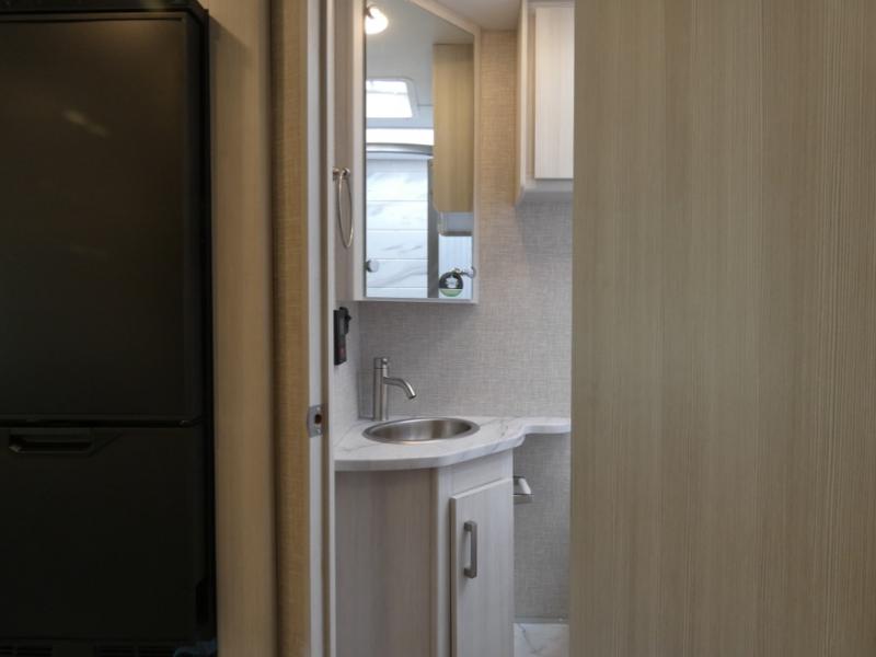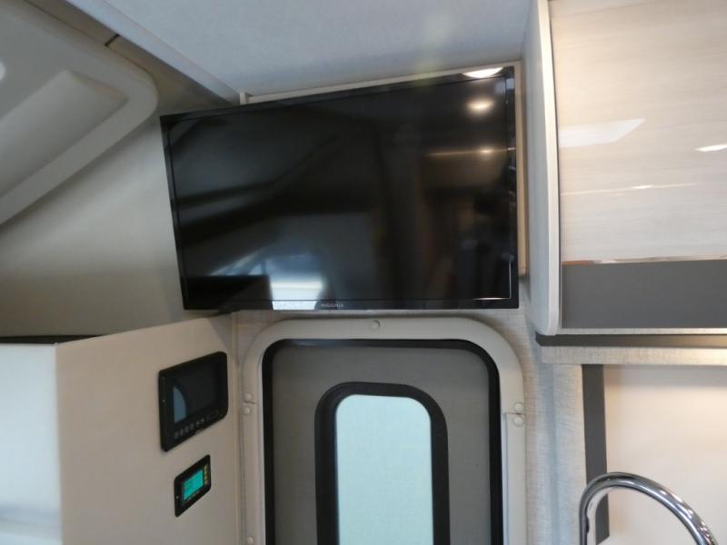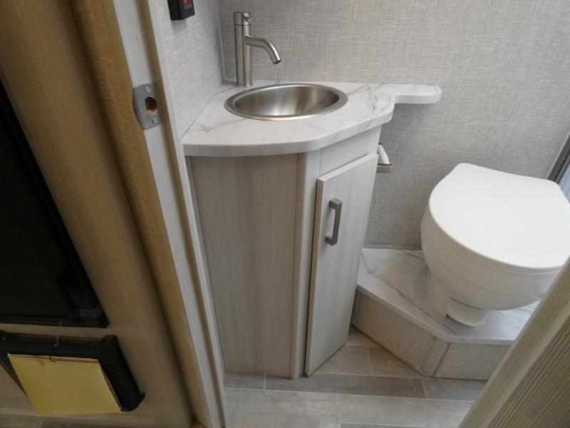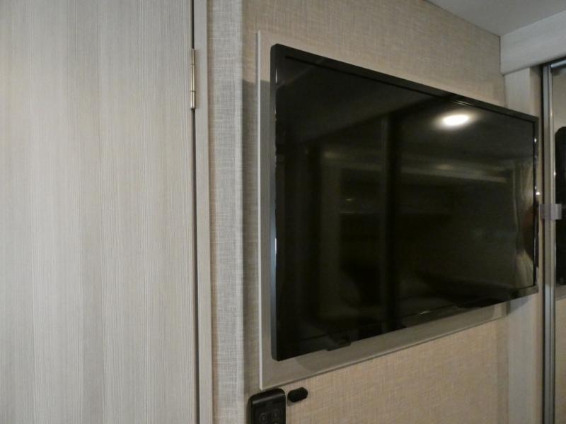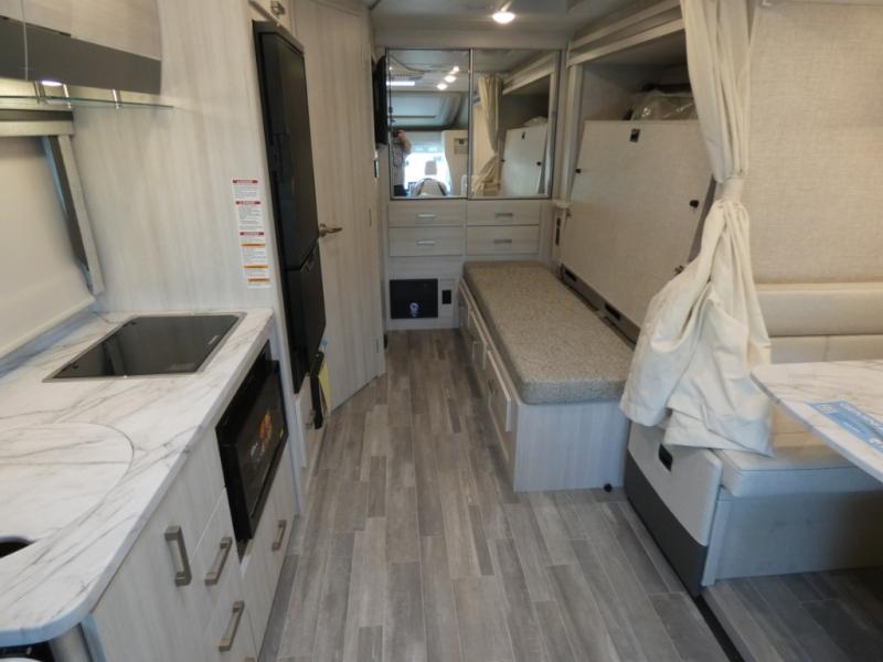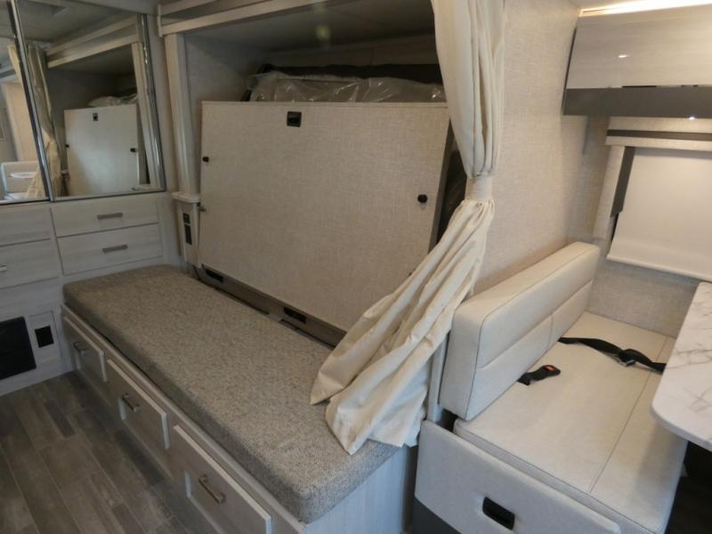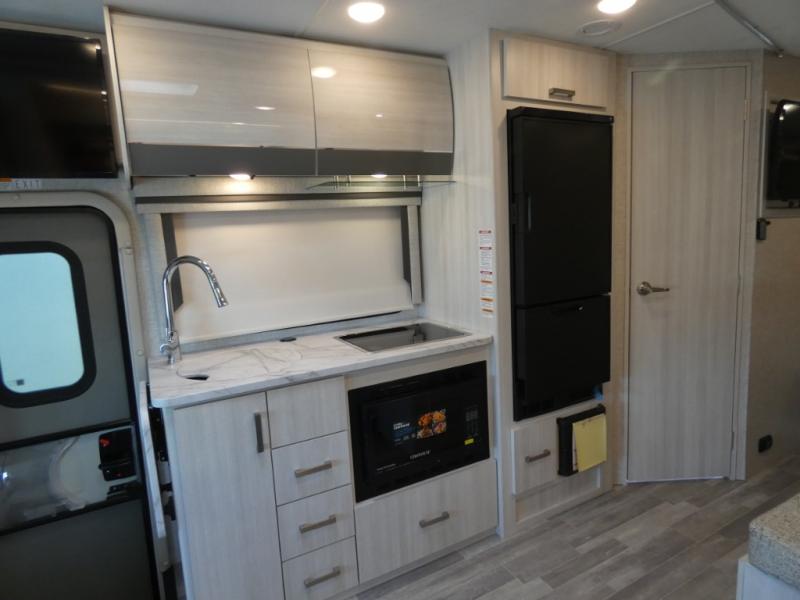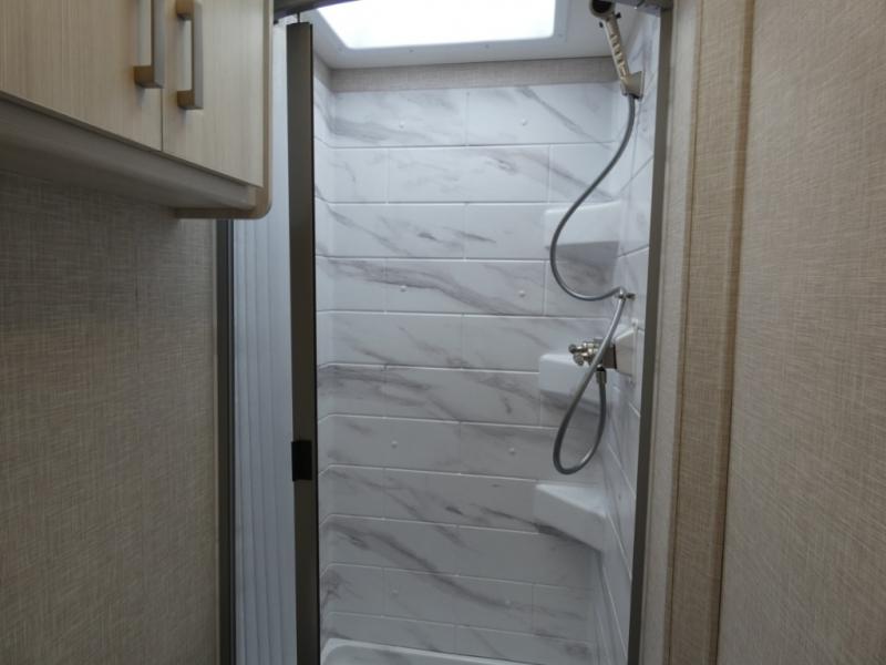 You will have everything you need in this motorhome for a comfortable trip! Create your own private bedroom with privacy curtain to close off the flip-up RV queen bed with cushioned seating underneath, the wardrobe, and the 32" TV. You can prepare delicious home cooked meals with the electric start two burner gas cooktop, keep your perishables fresh in the single door refrigerator, and enjoy your meals at the 68" dream dinette. There is also an entryway 32" TV to watch your favorite movies and a built-in skylight for more natural lighting. Start and end your days feeling squeaky clean in the rear corner bathroom with the 24" x 32" shower!