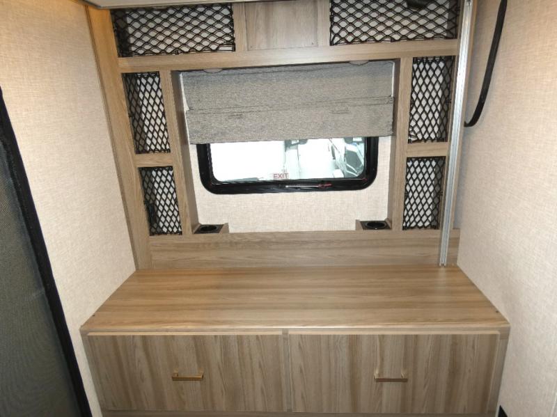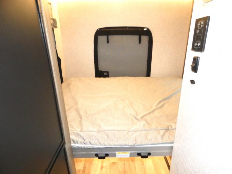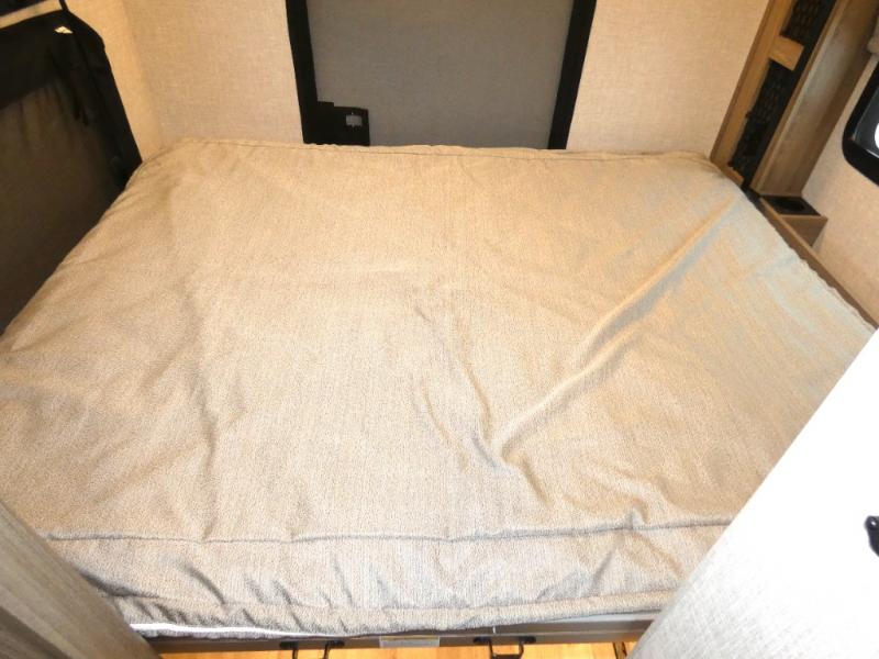 Step inside our incredible motorhome and discover a world of comfort, style, and adventure. The spacious queen-sized bunk features storage and drawers below, perfect for keeping your belongings organized and within reach. A convenient closet provides ample storage for your clothing and accessories, while the 12V double door refrigerator keeps your favorite foods and drinks fresh and chilled. The single burner countertop, microwave, and dinette with adjustable/removable table provide everything you need to prepare and enjoy delicious meals on the go. Additional features include a flip-up countertop for added convenience, and a full bathroom with a spacious 30” x 36” shower. Relax and unwind after a long day of adventure with our 32” Smart TV, perfect for streaming your favorite shows and movies.