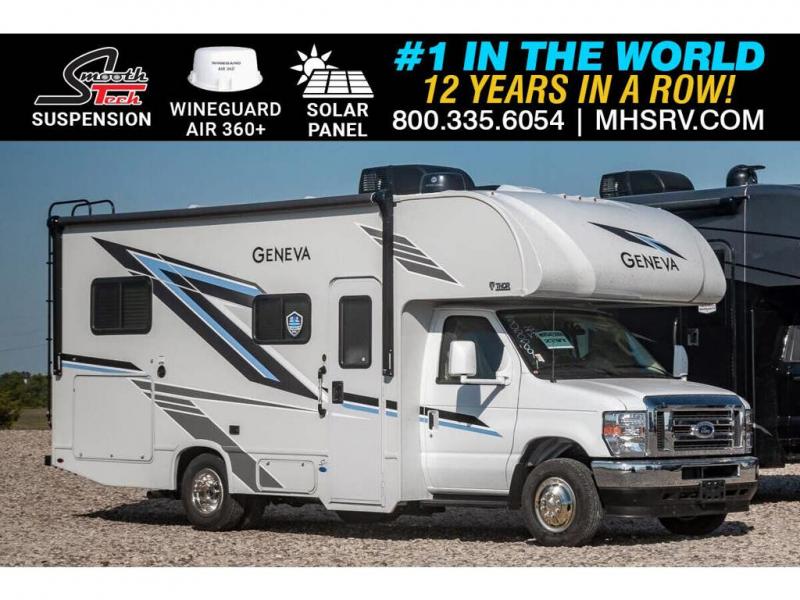 M.S.R.P. $132,435. Motor Home Specialist is proud to introduce the all-new Thor Motor Coach Geneva, an exciting new luxury class C RV to complement our incredible line-up of Thor C Class RVs including the Thor Chateau, Four Winds and Quantum! Compare & save big on this well-appointed Thor Motor Coach Geneva 22VT. The Geneva is packed with features that include a Ford V8 engine, Steering wheel audio and camera control on the Ford chassis, SmoothTECH suspension, touchscreen radio with Apple CarPlay & Android Auto, back-up monitor, valve stem extenders and keyless entry, stainless steel wheel liners, 12V refrigerator w/ auto generator start, 3 burner gas cooktop/oven with glass cover, microwave oven, Winegard Connect WiFi hotspot, holding tanks with heat pads, solar charging system and much more. Additional options include the 15K BTC roof A/C. For additional details on this unit and our entire inventory including brochures, window sticker, videos, photos, reviews & testimonials as well as additional information about Motor Home Specialist and our manufacturers please visit us at MHSRV.com or call 800-335-6054. At Motor Home Specialist, we DO NOT charge any prep or orientation fees like you will find at other dealerships. All sale prices include a 200-point inspection, interior & exterior wash, detail service and a fully automated high-pressure rain booth test and coach wash that is a standout service unlike that of any other in the industry. You will also receive a thorough coach orientation with an MHSRV technician, a night stay in our delivery park featuring landscaped and covered pads with full hook-ups and much more! Read Thousands upon Thousands of 5-Star Reviews at MHSRV.com and See What They Had to Say About Their Experience at Motor Home Specialist. WHY PAY MORE? WHY SETTLE FOR LESS?