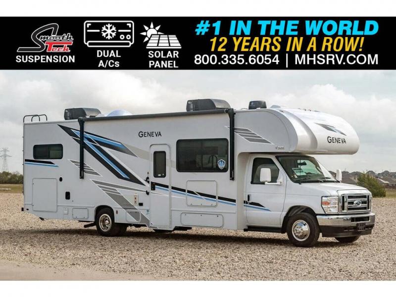 MSRP $170,685. Motor Home Specialist is proud to introduce the all-new Thor Motor Coach Geneva, an exciting new luxury class C RV to complement our incredible line-up of Thor C Class RVs including the Thor Chateau, Four Winds and Quantum! Compare & save big on this well-appointed Thor Motor Coach Geneva 31VT. The Geneva is packed with features that include a Ford V8 engine, Steering wheel audio and camera control on the Ford chassis, SmoothTECH Suspension, touchscreen radio with Apple CarPlay & Android Auto, back-up monitor, Winegard Connect WiFi hotspot, solar charging system, holding tanks w/ heat pads, stainless steel wheel liners, 12V refrigerator w/ auto generator start and much more. Additional features include exterior TV w/ bluetooth soundbar & radio and dual 11K BTU roof A/C's w/ Energy management. For additional details on this unit and our entire inventory including brochures, window sticker, videos, photos, reviews & testimonials as well as additional information about Motor Home Specialist and our manufacturers please visit us at MHSRV.com or call 800-335-6054. At Motor Home Specialist, we DO NOT charge any prep or orientation fees like you will find at other dealerships. All sale prices include a 200-point inspection, interior & exterior wash, detail service and a fully automated high-pressure rain booth test and coach wash that is a standout service unlike that of any other in the industry. You will also receive a thorough coach orientation with an MHSRV technician, a night stay in our delivery park featuring landscaped and covered pads with full hook-ups and much more! Read Thousands upon Thousands of 5-Star Reviews at MHSRV.com and See What They Had to Say About Their Experience at Motor Home Specialist. WHY PAY MORE? WHY SETTLE FOR LESS?
