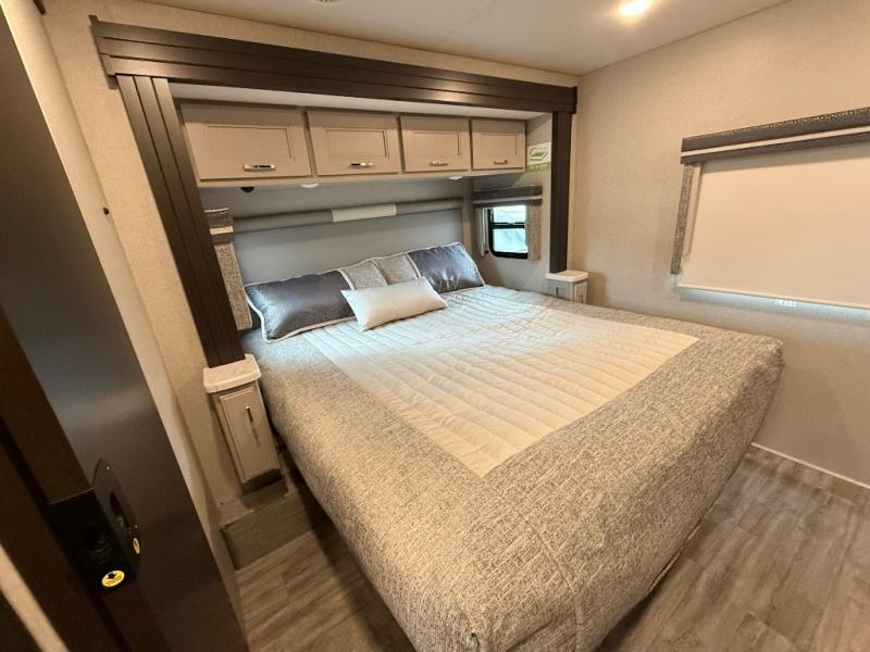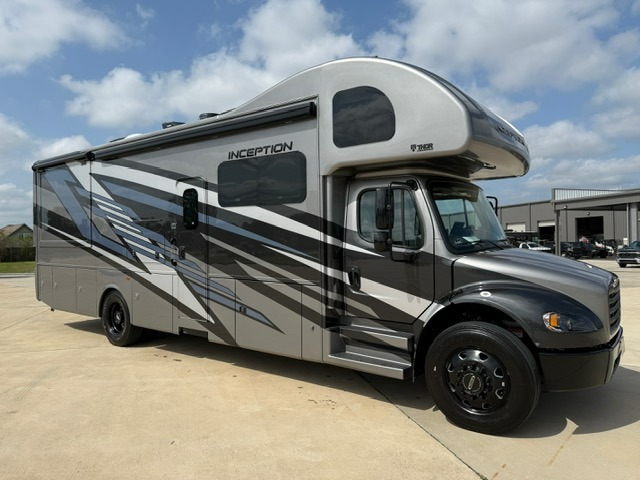 Every aspect of these Thor Motor Coach Inception Super C diesel motorhomes have been designed to increase your comfort of living on the road! The S2RV Freightliner chassis with an Atlas foundation is ultra durable and its power comes from an ISB-XT Cummins 6.7L 360 HP engine. It will be hard to ignore these modern masterpieces on the road with their sleek and functional fiberglass front cap with a windshield, one-piece fiberglass rear cap, and full-body paint with gel coated sidewalls. The Pet-Link multi-purpose tie-down will let you bring along your furry friends, and the massive external basement pass-through storage area is perfect for surfboards, fishing poles, folding bikes, and other outdoor gear. Entertainment is found all throughout between the Winegard ConnecT 5.0 that works as a WiFi extender, and the LED TVs in the living area, bedroom, and exterior. Come find your favorite one today!