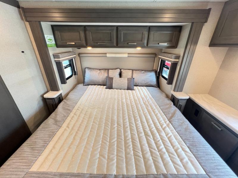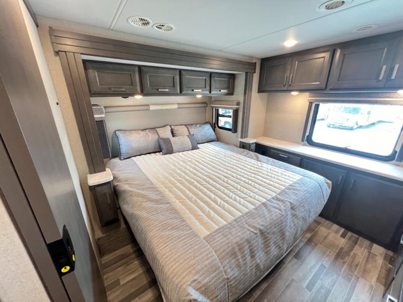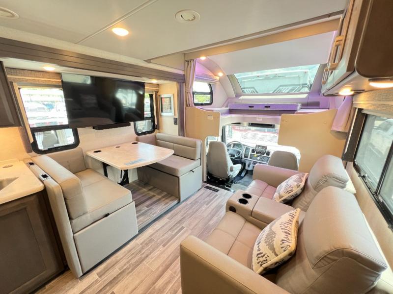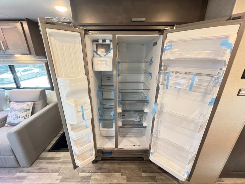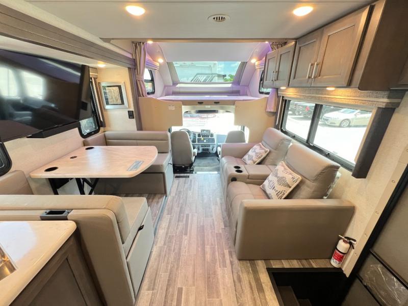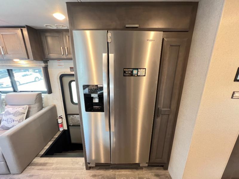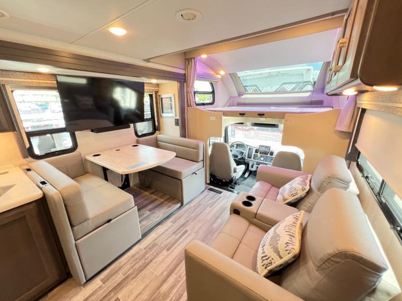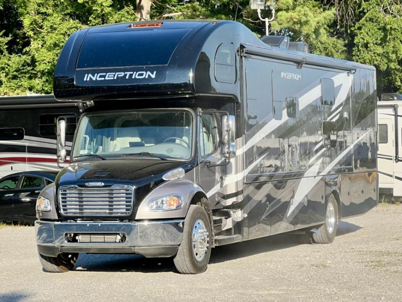 Every aspect of these Thor Motor Coach Inception Super C diesel motorhomes have been designed to increase your comfort of living on the road! The S2RV Freightliner chassis with an Atlas foundation is ultra durable and its power comes from an ISB-XT Cummins 6.7L 360 HP engine. It will be hard to ignore these modern masterpieces on the road with their sleek and functional fiberglass front cap with a windshield, one-piece fiberglass rear cap, and full-body paint with gel coated sidewalls. The Pet-Link multi-purpose tie-down will let you bring along your furry friends, and the massive external basement pass-through storage area is perfect for surfboards, fishing poles, folding bikes, and other outdoor gear. Entertainment is found all throughout between the Winegard ConnecT 5.0 that works as a WiFi extender, and the LED TVs in the living area, bedroom, and exterior. Come find your favorite one today!