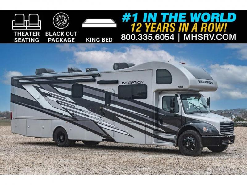 MSRP $362,446. New 2025 Thor Motor Coach Inception 38BX Bunk Model. This luxury Super C is approximately 39 feet 10 inches in length with a Freightliner chassis, Cummins 6.7L ISB engine w/360HP, Tilt-A-View inclining King Bed, stainless residential refrigerator with ice maker, exterior entertainment center, and a spacious dream dinette. This beautiful motorhome includes upgraded features such as the dual 15K BTU A/Cs with dual heat pumps, LVT tile flooring, solar charging now monitored through the Firefly monitor panel, shower miser, Oxygenics shower head, new hardwood cabinet doors. Options include the solar charging system and Stealth Package featuring black rims, black painted steel bumper, black grille, black air intake, black mirrors covers and black headlight bezel. The Inception has an incredible list of standard features including the air-ride suspension, full-hydraulic automatic leveling jack system, 8KW Onan diesel generator, solar panel, tankless water heater, legless power patio awning, frameless dual pane windows, Winegard ConnecT 4G Wi-Fi System and much more. This RV also features the optional leatherette sofa bed. For additional details on this unit and our entire inventory including brochures, window sticker, videos, photos, reviews & testimonials as well as additional information about Motor Home Specialist and our manufacturers please visit us at MHSRV.com or call 800-335-6054. At Motor Home Specialist, we DO NOT charge any prep or orientation fees like you will find at other dealerships. All sale prices include a multi-point inspection, interior & exterior wash, detail service and a fully automated high-pressure rain booth test and coach wash that is a standout service unlike that of any other in the industry. You will also receive a thorough coach orientation with an MHSRV technician, a night stay in our delivery park featuring landscaped and covered pads with full hook-ups and much more! Read Thousands upon Thousands of 5-Star Reviews at MHSRV.com and see what they had to say about their experience at Motor Home Specialist. MHSRV.com or 800-335-6054 - Why Pay More? Why Settle for Less?