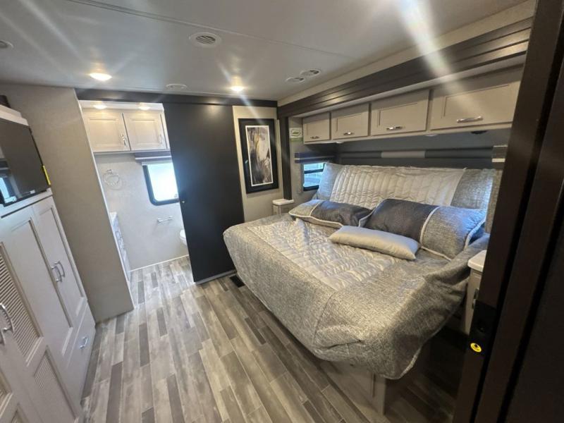 Every aspect of these Thor Motor Coach Inception Super C diesel motorhomes have been designed to increase your comfort of living on the road! The S2RV Freightliner chassis with an Atlas foundation is ultra durable and its power comes from an ISB-XT Cummins 6.7L 360 HP engine. It will be hard to ignore these modern masterpieces on the road with their sleek and functional fiberglass front cap with a windshield, one-piece fiberglass rear cap, and full-body paint with gel coated sidewalls. The Pet-Link multi-purpose tie-down will let you bring along your furry friends, and the massive external basement pass-through storage area is perfect for surfboards, fishing poles, folding bikes, and other outdoor gear. Entertainment is found all throughout between the Winegard ConnecT 5.0 that works as a WiFi extender, and the LED TVs in the living area, bedroom, and exterior. Come find your favorite one today!