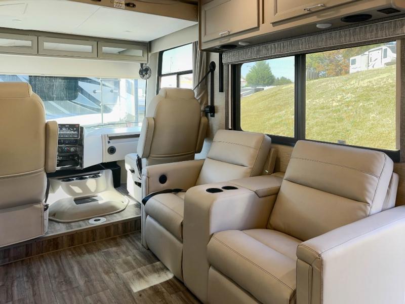 There's something for everyone in the Thor Motor Coach Luminate class A gas motorhome! Built on the Ford F53 chassis, with family-friendly designs and features that will make your life easier, these are worth considering. Residential vinyl flooring throughout is comfortable and easy to care for, while the solid surface countertops make your kitchen look great. Multiple TVs mean there's no fighting over what to watch, and a high-tech driver console adds Bluetooth®, Android Auto™, Apple CarPlay® and Sirius/XM® Radio via a 10-inch touchscreen so you can listen to whatever music you like. The dinette booth has a wireless phone charger with integrated USB plug for charging convenience, or use the dash workstation which has 100-volt and 12-volt outlets.