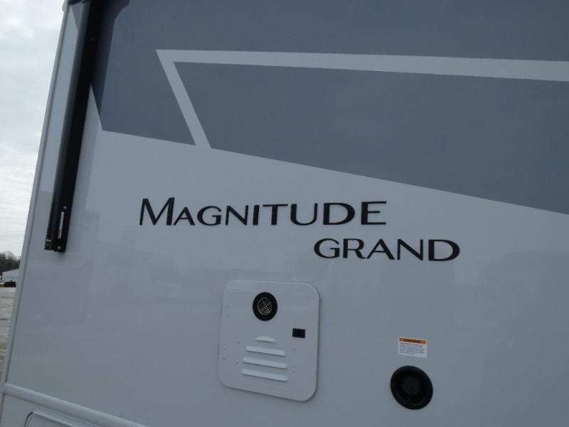 The Magnitude GRAND Super C diesel motorhomes by Thor Motor Coach are built to last, featuring Vacu-bond laminated roofs and floors with block foam insulation for unparalleled durability and climate control which ensures a comfortable and quiet living space. Stay connected and entertained on the go with the innovative sync-enhanced voice recognition communication and entertainment system. With just the sound of your voice, you can control everything from navigation to music playlists. Setting up camp has never been easier, thanks to our automatic leveling jacks with a touchpad, simply press a button and let the system do the work for you. Inside, you'll enjoy incredible interior features like a spacious 84” interior ceiling height, perfect for comfortable living, solid countertops, designer headboard, bedspread, and pillow shams. Plus you can beat the heat with the dual 13,500 BTU roof air conditioners, providing superior cooling power to keep you comfortable in even the warmest climates. Explore our motorhome collection today and discover a new standard of luxury and adventure.
