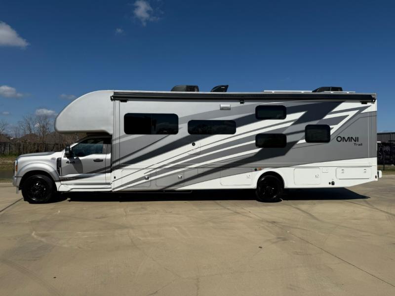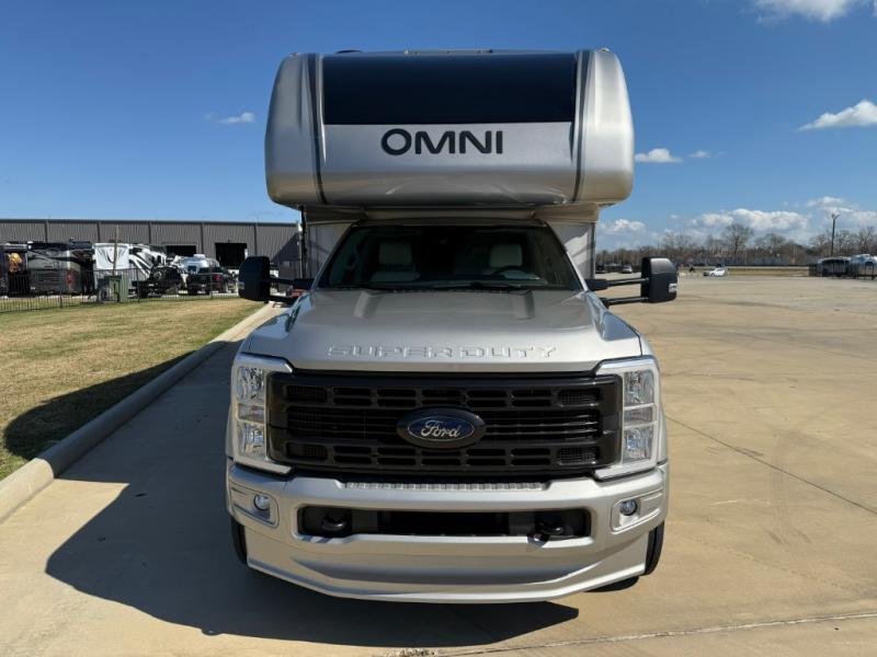 The Omni Super C diesel motorhome by Thor Motor Coach starts with a durable welded tubular steel floor, vacu-bond laminated roof, walls, and floors with block foam insulation, and a full-body paint package with gel-coat sidewalls. Each model includes either a F550 or F600 Power Stroke 4 x 4 Turbo Diesel engine that will allow you to maneuver tougher terrain when the adventure calls for it. The cockpit is every captain's dream with its power adjustable driver's seat, side view and back-up camera system, heated remote exterior mirrors, and more. You can control all of your coach's functions with the RapidCamp+ multiplex wiring control system, and the Winegard ConnecT Wi-Fi extender with 4G will allow you to stay in touch with the outside world as you travel. Each model includes residential linoleum throughout, Leatherette furniture, designer backsplash and solid surface countertops in the kitchen, and a glass shower door for that added touch of luxury. Come see all the other great features the Omni Super C diesel motorhome has to offer!