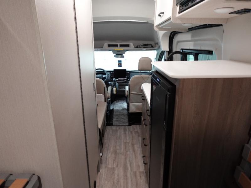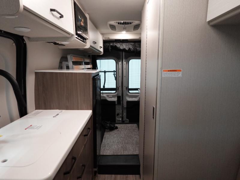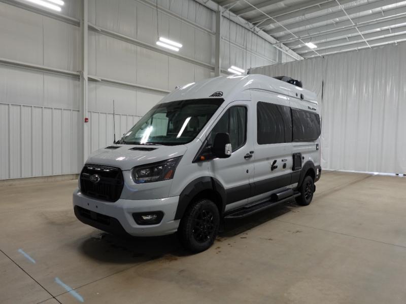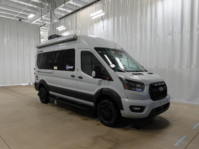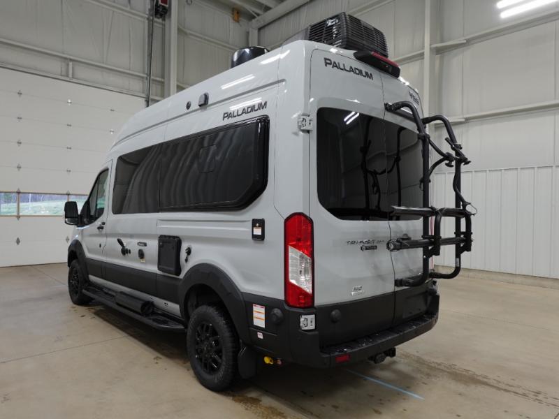 With any Palladium Class B gas motorhome by Thor Motor Coach, you can plan to go off-road with the Ford Transit Trail all-wheel drive chassis with a 3.5" body lift and Goodyear Wrangler Workhorse all-terrain tires. There is invisible front paint protection, a sliding door with an opening window, plus a 6,000 lb. trailer hitch for towing purposes. You will love the Thule lateral arm power awning with integrated LED lighting that will create an inviting outdoor space, and you can add the optional bike rack on the rear door if you plan to hit some trails! These camper vans include vinyl flooring inside, along with flat panel upper cabinet doors, Encompass Shades (cassette shades), large opening side windows, and many more comforts. You will also appreciate the solar charge controller with a 200W solar panel, the Combi Eco (LP) furnace and water heating system, and the FireFly multiplex wiring control system to name a few hassle-free amenities!