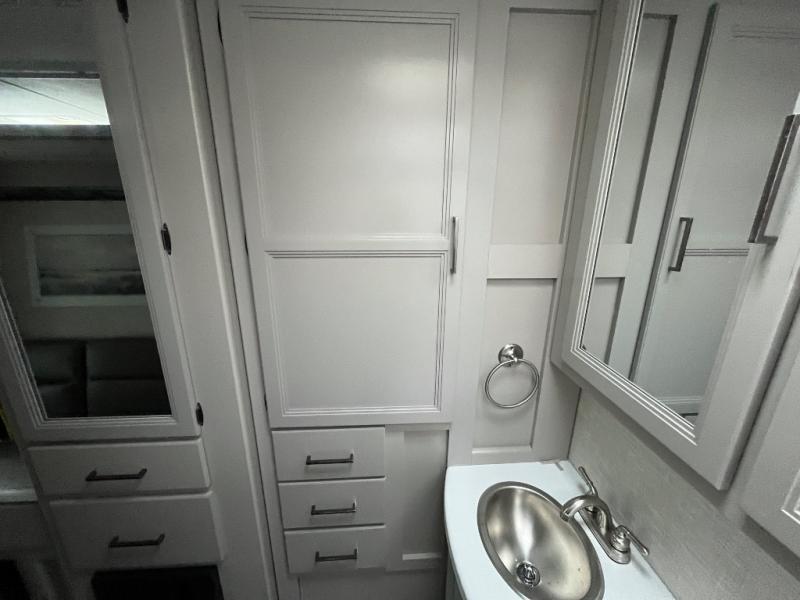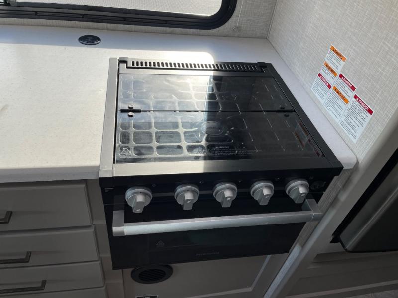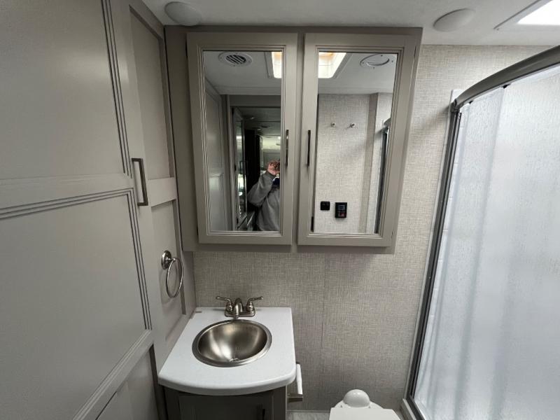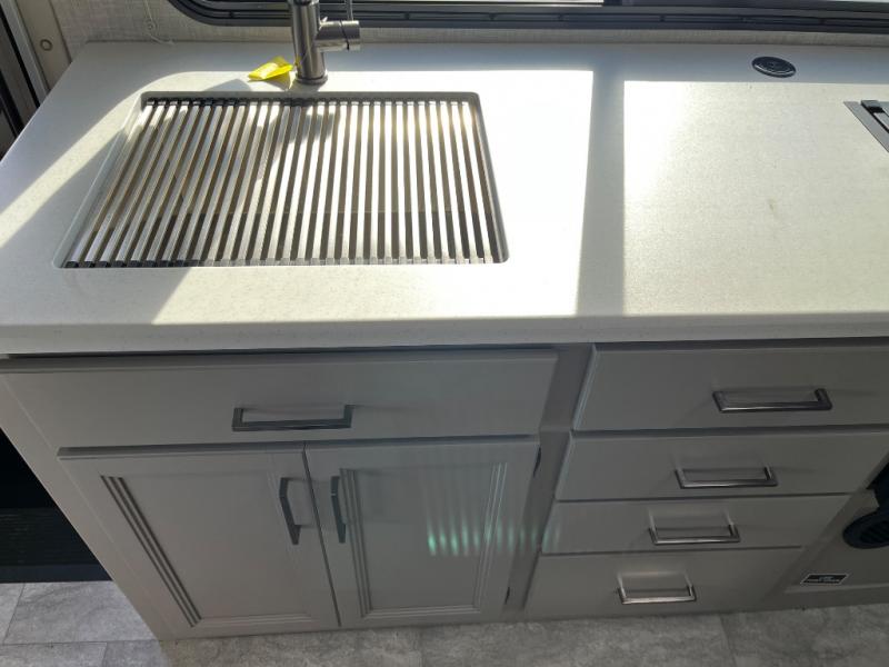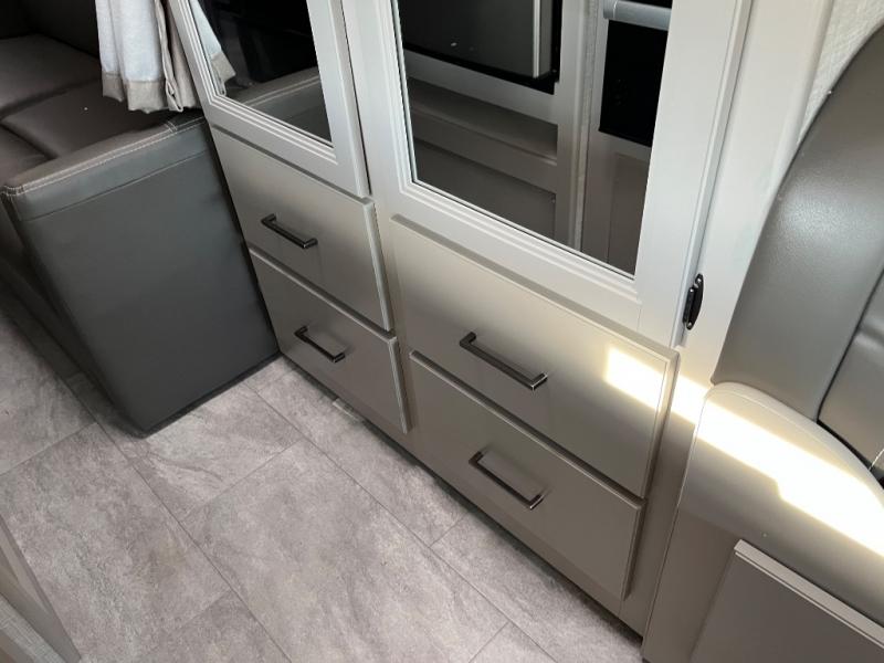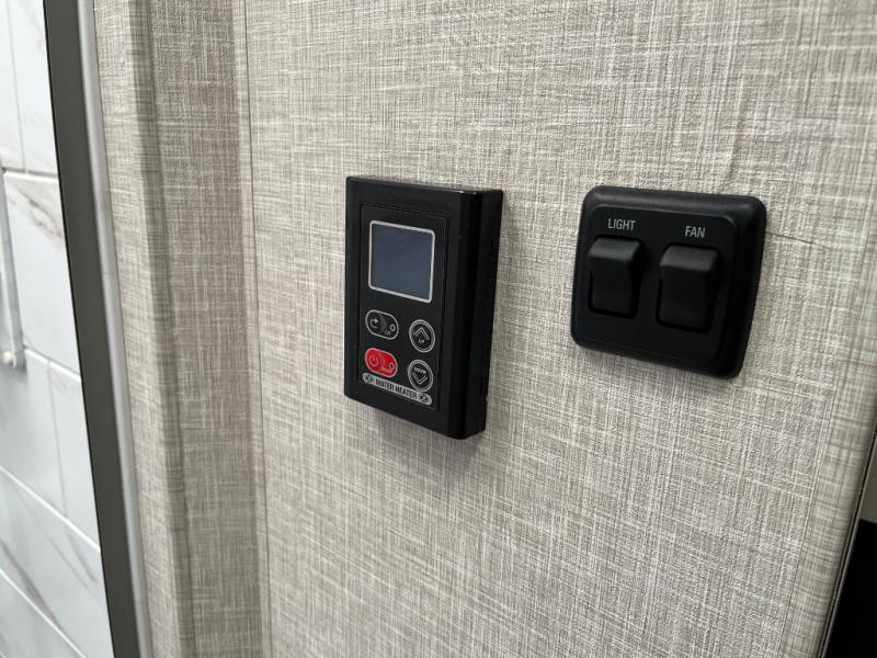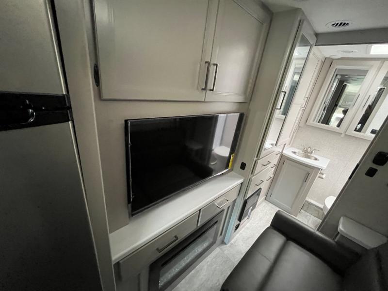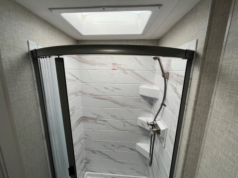 One step inside this coach and you'll be sold! The full-wall slide opens up your whole living space so it feels more open. You'll find the Dream Dinette, sofa with a Murphy bed, and two closets here for added convenience. There is even a fireplace to make it feel a little more like home and a privacy curtain around the bed if you have guests sleeping on the cab-over bunk or dinette! A three burner cooktop and microwave oven will allow you to make meals each day, and the 12V refrigerator can hold all your perishables. And don't over look the full rear bath with a foot flush toilet, shower skylight, and bath linen closet for clean towels. This model also includes an optional exterior TV and an optional exterior griddle if you want to cook breakfast outdoors!