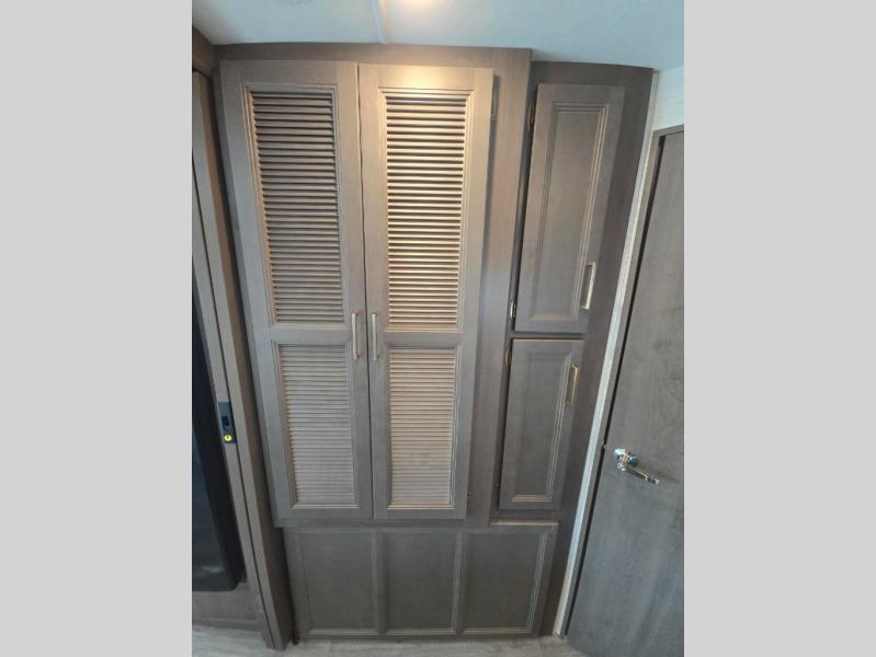 This coach includes everything you need and nothing you don't! From the semi-private bedroom and full bath, to the swivel captain's seats and drop-down overhead bunk, you won't be left wanting. The chef of your crew will love the extra counter space in the kitchen, along with a three burner cooktop and a microwave oven to prepare meals. You'll find dining space at the Dream Dinette, or you can sit at the camp picnic table under the 19' power awning with LED lights. This coach includes plenty of storage space, including a basement pass-through, a large bedroom closet, plus a kitchen pantry. And if you plan to go full-time, the closet with a combo washer and dryer prep will allow you to skip the laundromat!