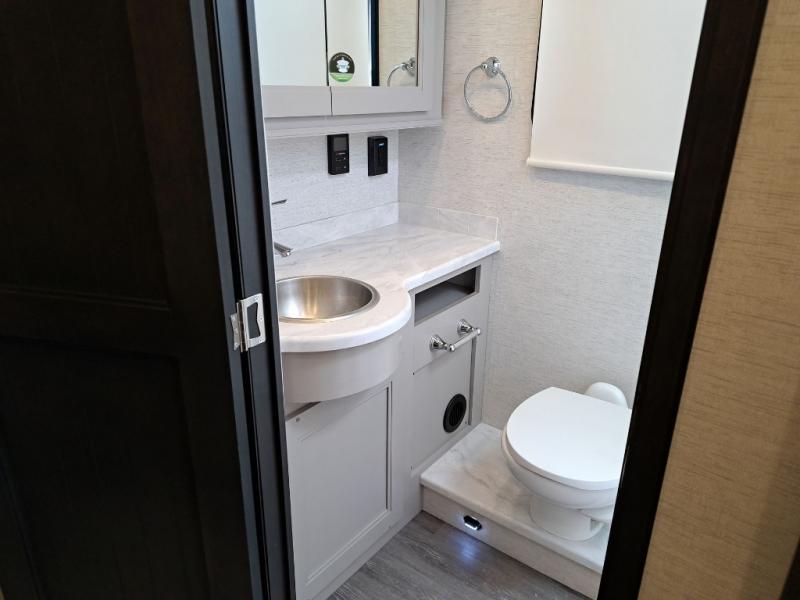 With any Riviera Class A diesel motorhome by Thor Motor Coach, you will enjoy a luxury home on wheels wherever you decide to roam! You will appreciate a capable Freightliner CS-S straight rail chassis with an Atlas foundation and better fuel mileage with the Cummins ISB-XT 6.7L diesel engine. There is a spacious basement pass-through storage for your camp gear, a powered patio awning with LED lighting, and an exterior 40" LED TV for outdoor movie nights. You will be able to enjoy your coach for years to come thanks to the durable construction materials that include a welded tubular steel floor, Vacu-Bond laminated roof, walls, and floor, plus a one-piece domed roof membrane. The elegant interior is designed with luxury vinyl tile flooring, "Wyndham" cabinetry with “Rake” style cabinet doors & nickel finish hardware. Some of the amenities you'll appreciate on each model include the RapidCamp+ multiplex wiring control system, a tankless water heater, and an Onan RV QD 6000 diesel generator. Enjoy your RV life with a Riviera Class A diesel coach!