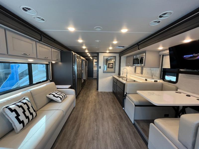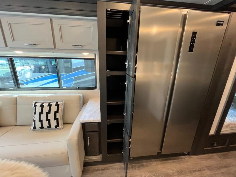 Upgraded Interior Package • Theater Seating • Exterior Power Awning • Premium Refrigerator • Enhanced Climate Control