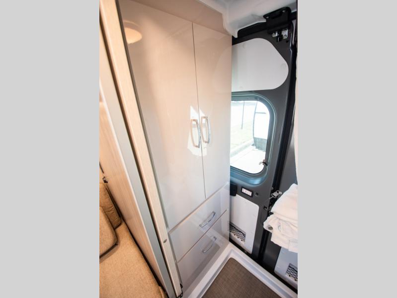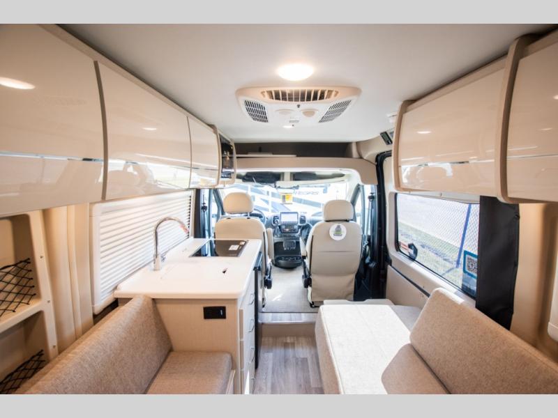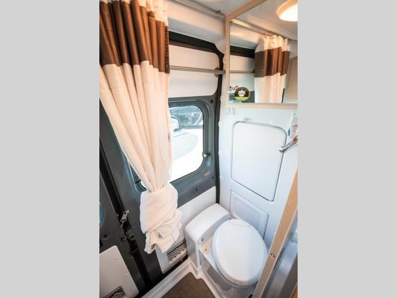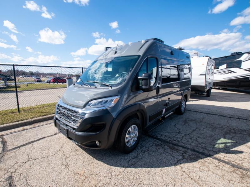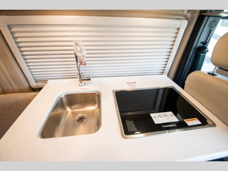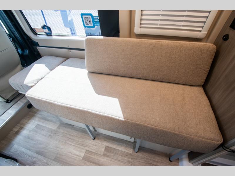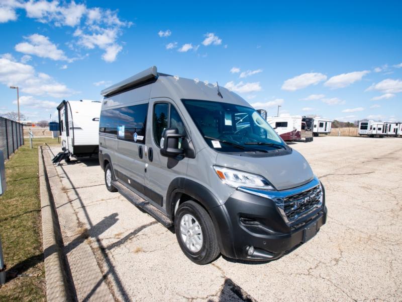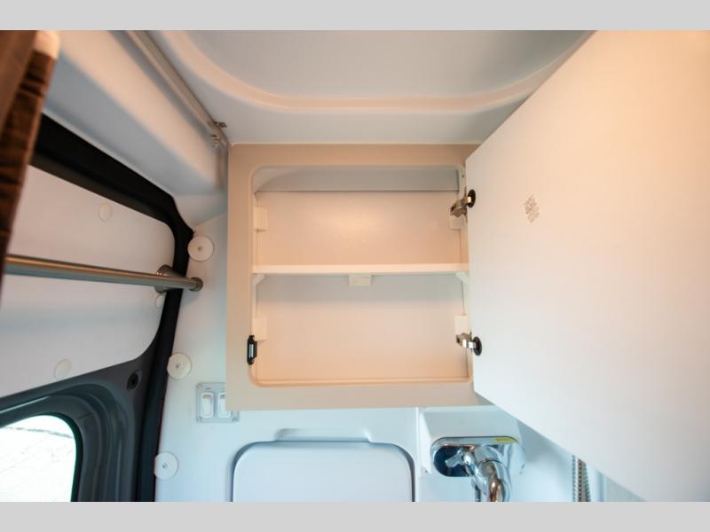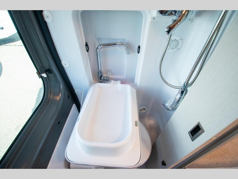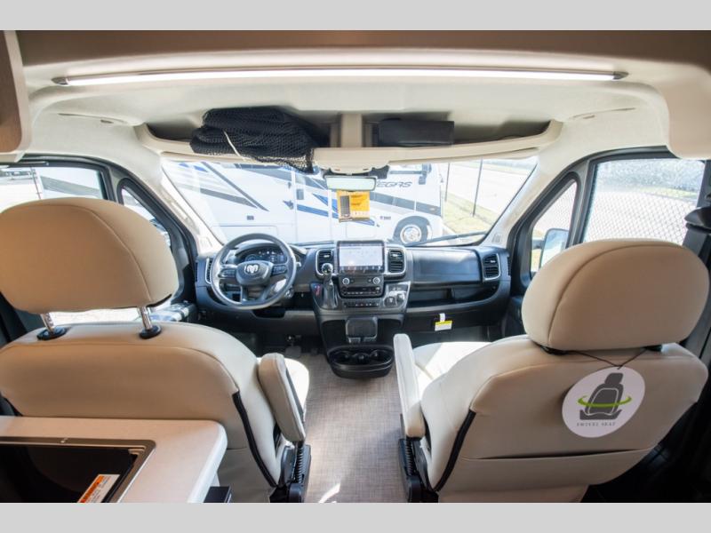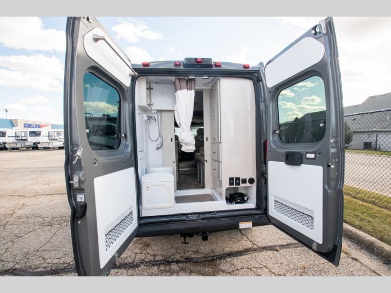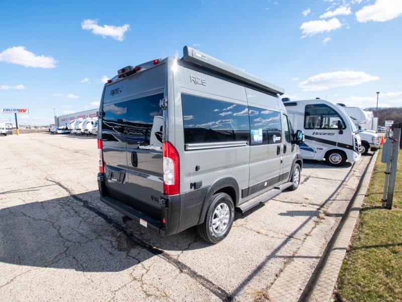 The Rize Class B gas motorhome by Thor Motor Coach allows you to experience the camping lifestyle in a compact RV packed with convenient features. There is a 3.6L Pentastar V6 engine and 276 HP to power your excursions, and the outdoor enthusiast will love the 200W solar panel and solar charge controller. Each model includes residential vinyl flooring, TecnoForm Euro-style upper cabinet doors, and premium window privacy shades. You'll find pressed countertops in the kitchen and a glass protective cover and task lighting above the cooktop to easily cook meals each day. The keyless entry system adds to the convenience found throughout these models, plus there is an exterior LP connection if you want to hook up your own grill and a rear water sprayer to wash off your hiking boots.
