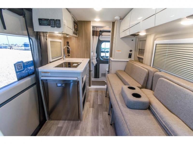 This coach is the perfect home on wheels for all your adventures. You will have everything you need, including a wet bath with a cassette toilet and pocket doors to save space. The Winegard ConnecT 2.0 4G/Wi-Fi/Digital TV antenna allows you to stay connected to the outside world. Once you have prepared breakfast on the two-burner gas cooktop, you can dine on the sofa with a removable table. This area can then be your sleeping space at night since the sofa converts into a 72" x 47" pull-out bed. Whether you're enjoying the fresh air let in by the large opening side windows, or you're sipping on a cold drink under the electric awning, you will love everything about this coach!