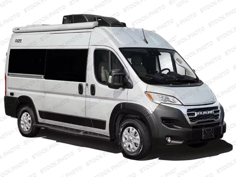 The Rize Class B gas motorhome by Thor Motor Coach allows you to experience the camping lifestyle in a compact RV packed with convenient features. There is a 3.6L Pentastar V6 engine and 276 HP to power your excursions, and the outdoor enthusiast will love the 200W solar panel and solar charge controller. Each model includes residential vinyl flooring, TechnoForm Euro-style upper cabinet doors, and premium window privacy shades. You'll find pressed countertops in the kitchen and a glass protective cover and task lighting above the cooktop to easily cook meals each day. The keyless entry system adds to the convenience found throughout these models, plus there is an exterior LP connection if you want to hook up your own grill and a rear water sprayer to wash off your hiking boots.