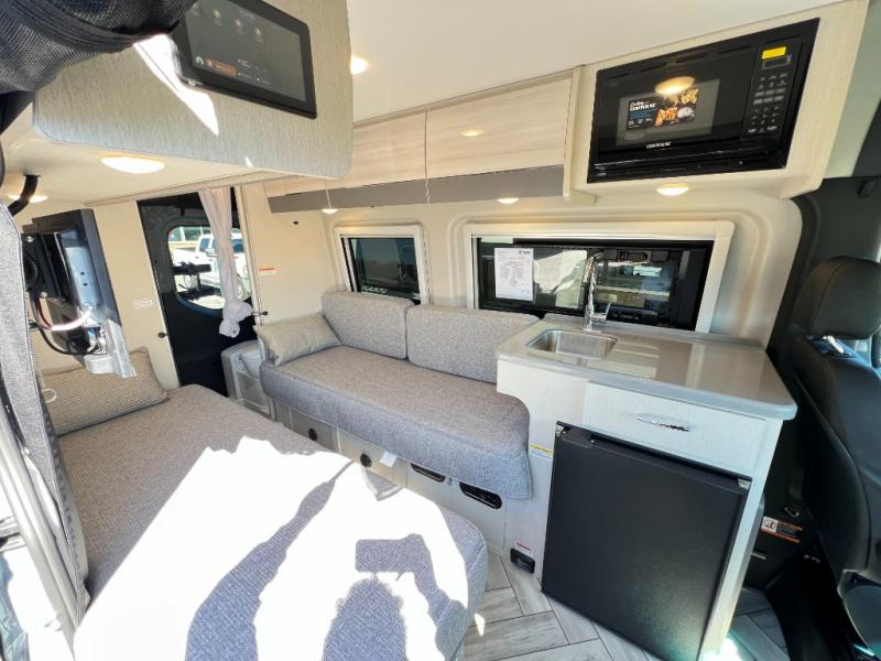 With any Sanctuary Class B diesel motorhome, you can explore off-grid thanks to the solar charging system which includes a 200-watt solar panel and charge controller to keep your house batteries full without overcharging. The Winegard ConnecT 2.0 works as your WiFi extender, 4G hotspot, and TV antenna in case you need to stay connected, plus each model is HS/DDS satellite and cable TV ready if you want to add entertainment. Each is built on a Mercedes Sprinter 2500 or 3500 all-wheel drive chassis, depending on the model you chose, and you'll appreciate the 5,000 lb. trailer hitch for your towing needs. Inside, you'll enjoy light weight cabinetry, cassette shades, black out window coverings, and Euro-style upper cabinet doors for a more modern look.