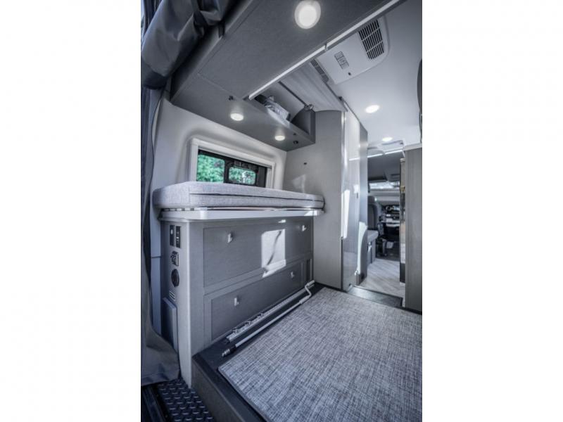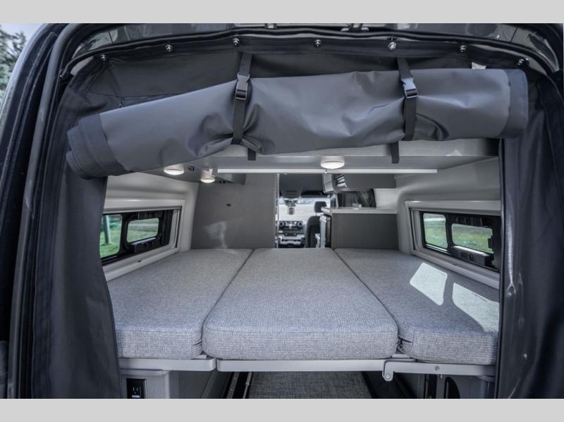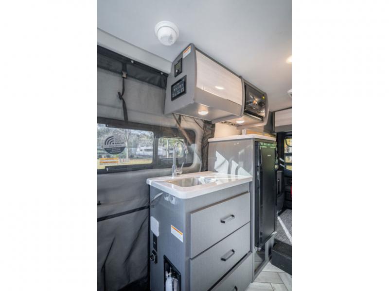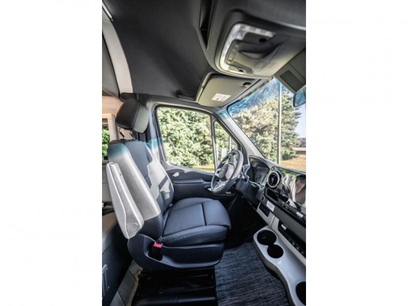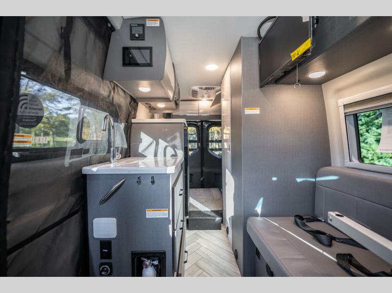 With any Sanctuary Class B diesel motorhome, you can explore off-grid thanks to the solar charging system which includes a 200-watt solar panel and charge controller to keep your house batteries full without overcharging. The Winegard ConnecT 2.0 works as your WiFi extender, 4G hotspot, and TV antenna in case you need to stay connected, plus each model is HS/DDS satellite and cable TV ready if you want to add entertainment. Each is built on a Mercedes Sprinter 2500 or 3500 all-wheel drive chassis, depending on the model you chose, and you'll appreciate the 5,000 lb. trailer hitch for your towing needs. Inside, you'll enjoy light weight cabinetry, cassette shades, black out window coverings, and Euro-style upper cabinet doors for a more modern look.