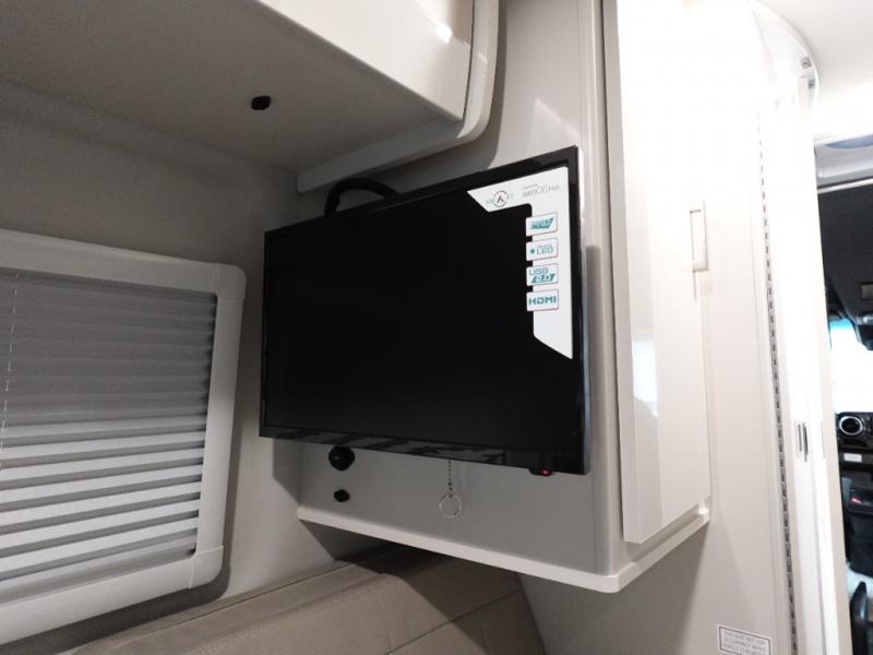 Calling all outdoor enthusiasts to explore the unknown sites in this camper van for two! The captain's chairs swivel for more seating space once at your destination, and the rear sofa folds out to offer a 73" x 70" sleeping space. You can watch TV before bedtime, and get cleaned up in the wet bath. The kitchen area features a single door 12V refrigerator, a microwave oven, plus a solid surface countertop and single bowl sink. For cooking, you will find a single burner induction cooktop. You can even enjoy dining outside using the fold-out exterior table. When traveling the rear sofa offers three sets of seatbelts for safety.
