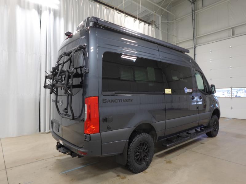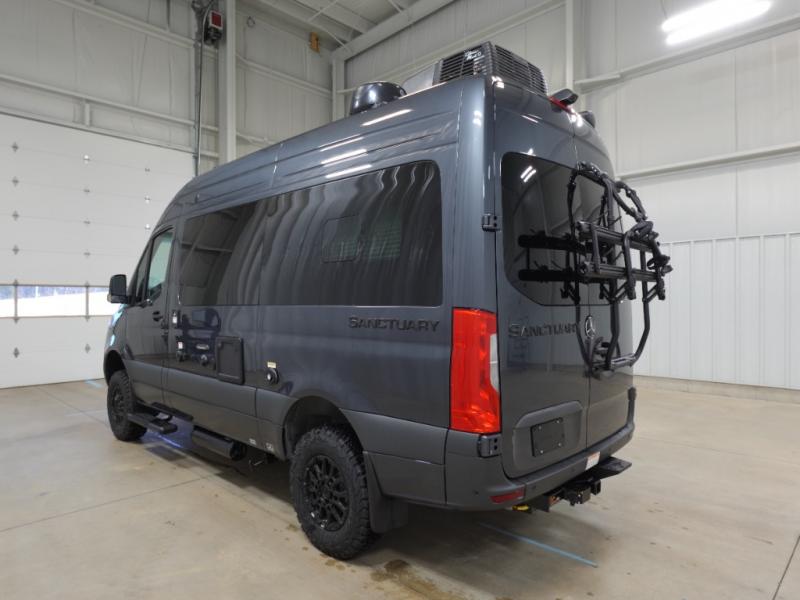 With any Sanctuary Class B diesel motorhome, you can explore off-grid thanks to the solar charging system which includes a 200-watt solar panel and charge controller to keep your house batteries full without overcharging. The Winegard ConnecT 2.0 works as your WiFi extender, 4G hotspot, and TV antenna in case you need to stay connected, plus each model is HS/DDS satellite and cable TV ready if you want to add entertainment. Each is built on a Mercedes Sprinter 2500 or 3500 all-wheel drive chassis, depending on the model you chose, and you'll appreciate the 5,000 lb. trailer hitch for your towing needs. Inside, you'll enjoy light weight cabinetry, cassette shades, black out window coverings, and Euro-style upper cabinet doors for a more modern look.