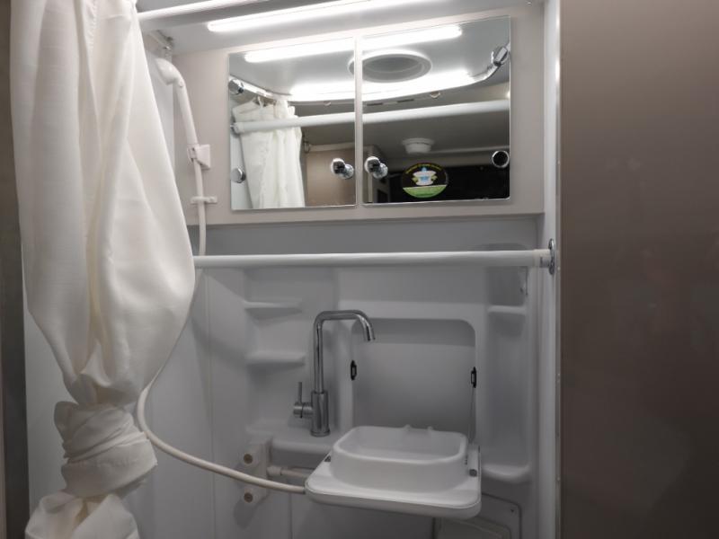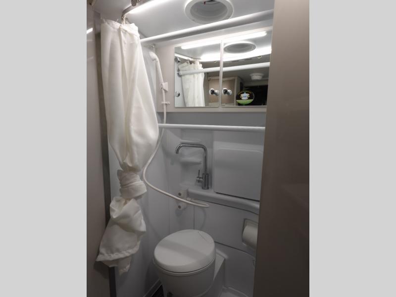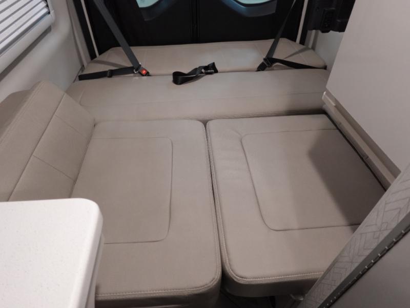 Calling all outdoor enthusiasts to explore the unknown sites in this camper van for two! The captain's chairs swivel for more seating space once at your destination, and the rear sofa folds out to offer a 73" x 70" sleeping space. You can watch TV before bedtime, and get cleaned up in the wet bath. The kitchen area features a single door 12V refrigerator, a microwave oven, plus a solid surface countertop and single bowl sink. For cooking, you will find a single burner induction cooktop. You can even enjoy dining outside using the fold-out exterior table. When traveling the rear sofa offers three sets of seatbelts for safety.