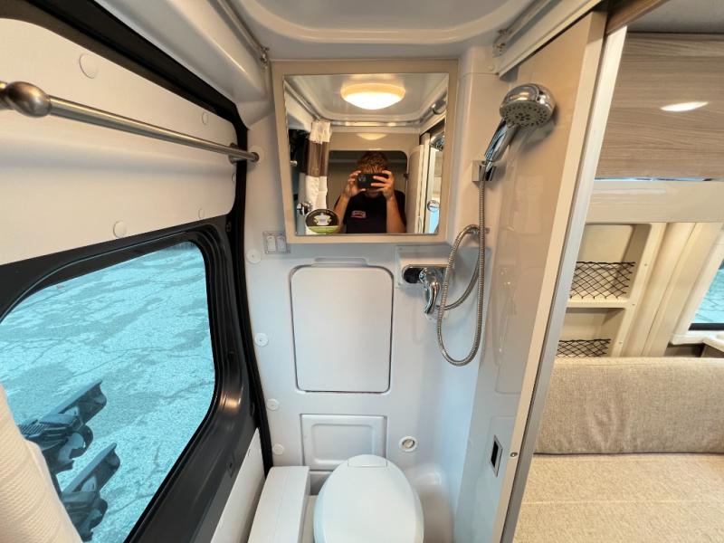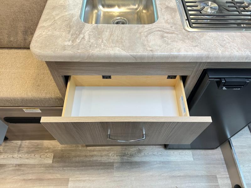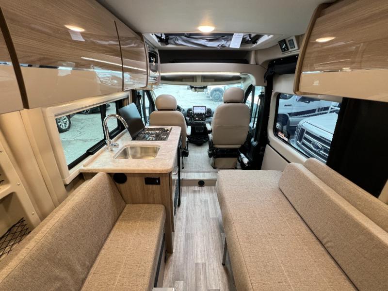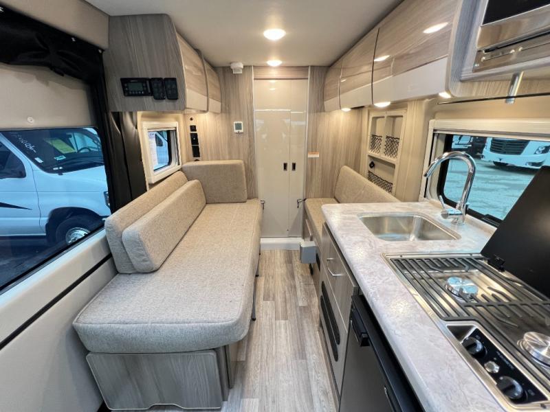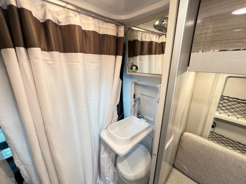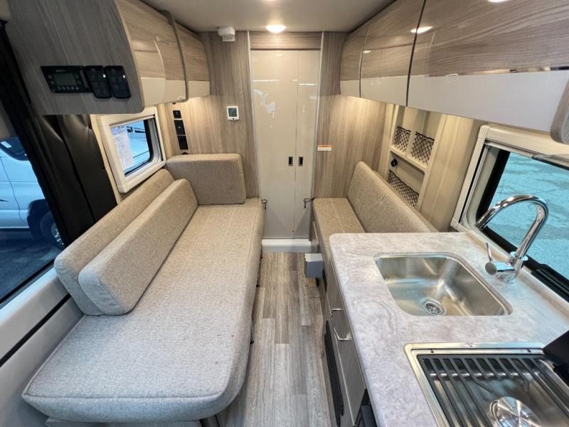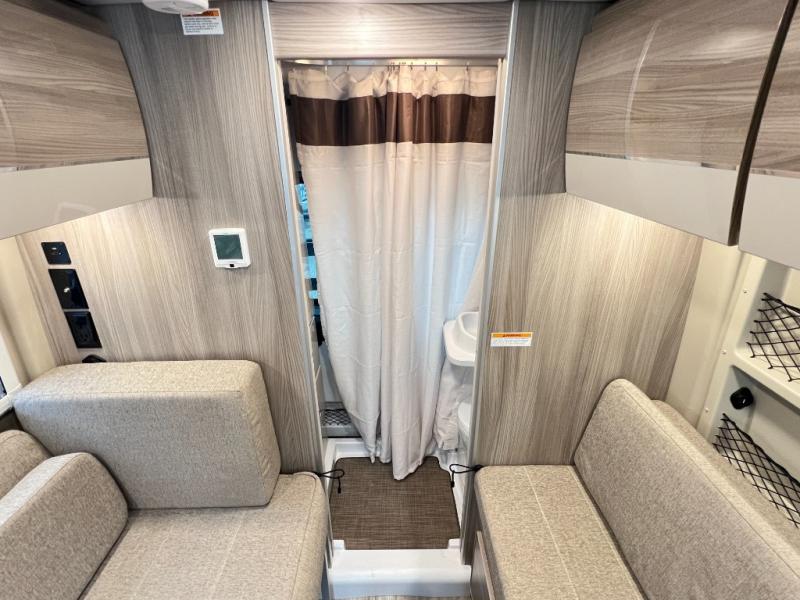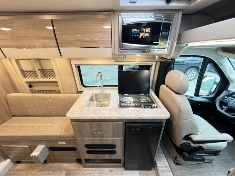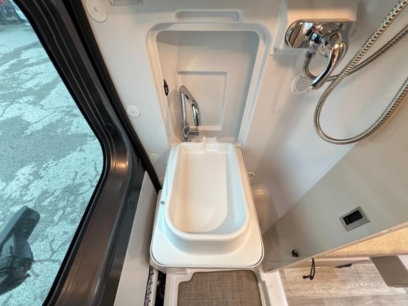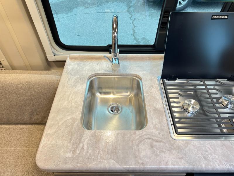 Get comfortable in this Scope Class B motorhome! The seating area includes an expanding sleeper sofa which converts to a roomy 44" x 70" bed. For additional guests, there's the option to add on the Sky Bunk™ with a retractable roof top. You'll have everything you need with the rear wet bath. The driving experience will delight you with swivel captain's chairs, touchscreen dash radio with Apple CarPlay™ & Android Auto™, keyless entry, and a telescoping steering wheel with audio buttons. You'll also appreciate the kitchen, which includes a two burner gas cooktop, microwave oven, and single door 12V electric refrigerator. The stainless steel double bowl sink includes a cover and single handle faucet for easy clean-up!