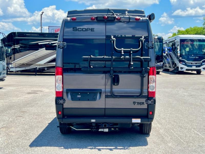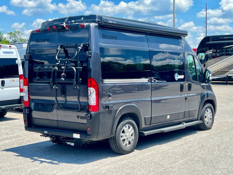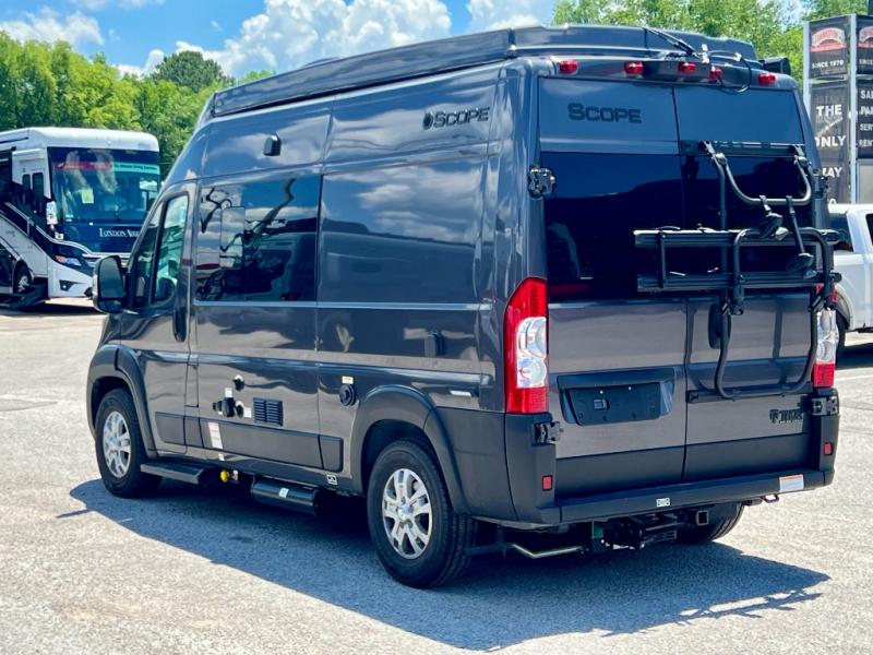 Each one of these Thor Motor Coach Scope Class B gas motorhomes are built for those who want to explore the great outdoors in comfort! They are front wheel drive and constructed with a RAM Promaster 1500 XT chassis, plus a 3,500 lb. trailer hitch with 4-pin connector so you can haul even more items with you. The side steps make it easier to enter and exit the units, and the entryway screen door is an added bonus. The single door 12V electric refrigerator is powered directly from the coach batteries which are charged by the quiet Onan® RV QG 2800 gas generator. You will also enjoy the residential vinyl flooring, premium window privacy roller shades, pressed countertops in the kitchen, and Euro-style upper cabinet doors for added comfort!